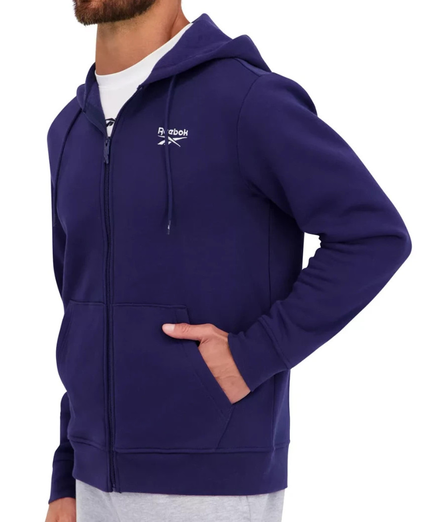 как выглядит REEBOK Identity Fleece Full Zip Hoodie Mens S Sweatshirt Training Navy Regular фото