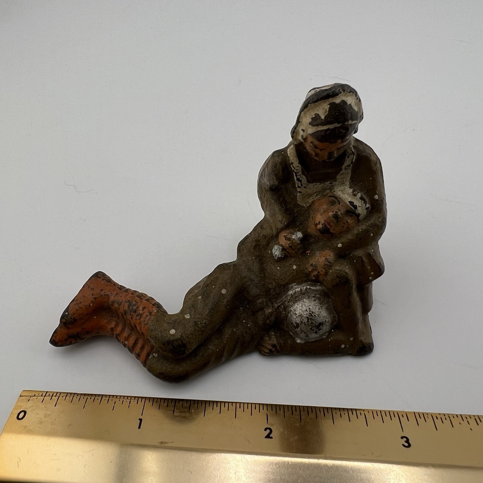 GREY IRON VINTAGE TOY SOLDIER NURSE INJURED SOLDIER 1930s SOLID ORIGINAL