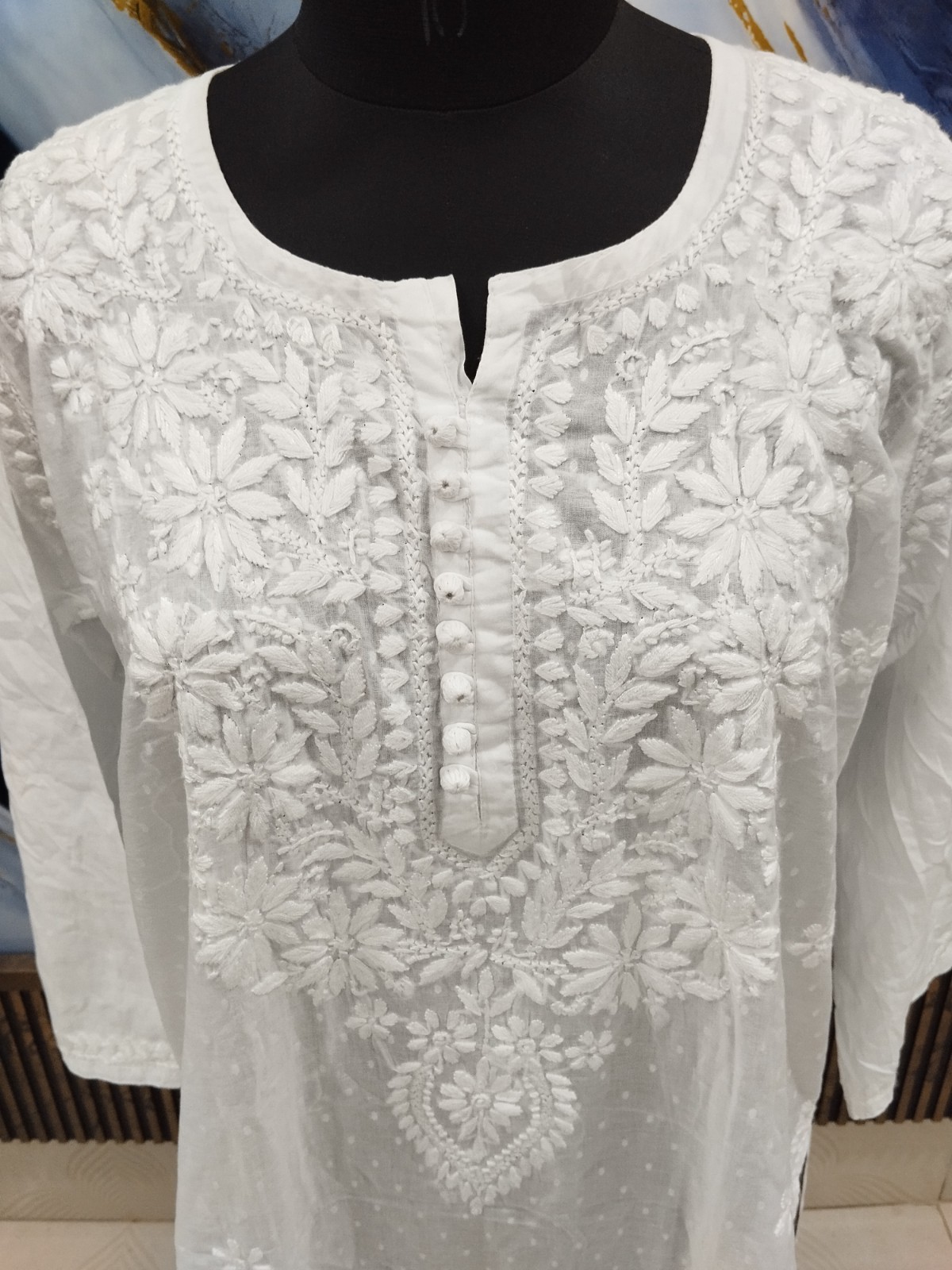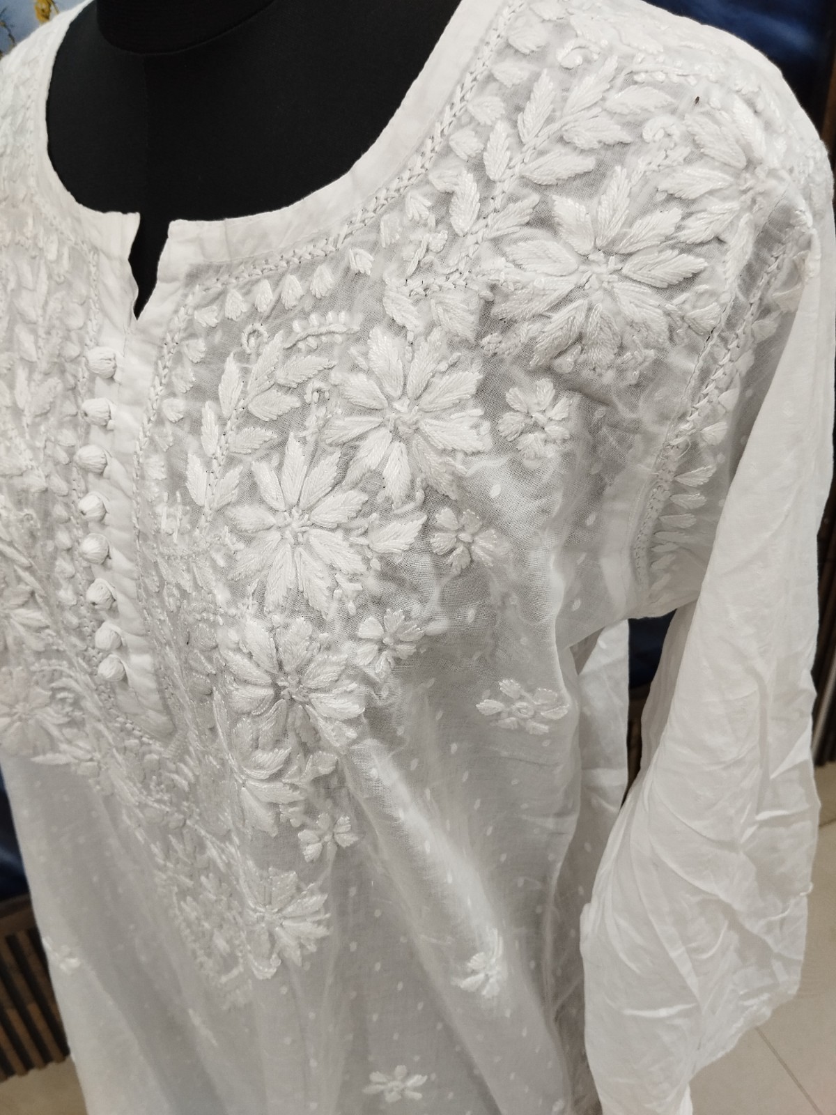 как выглядит XL 44" BEAUTIFUL HANDMADE 100 COTTON ETHNIC CHIKAN EMBROIDERY TOP KURTA KURTI фото