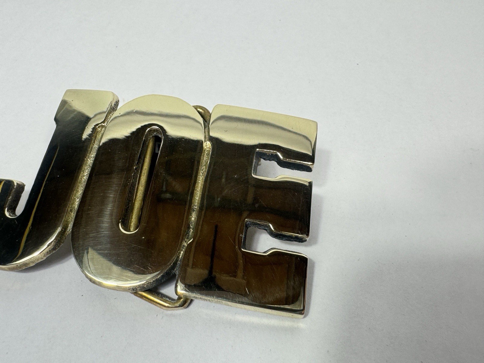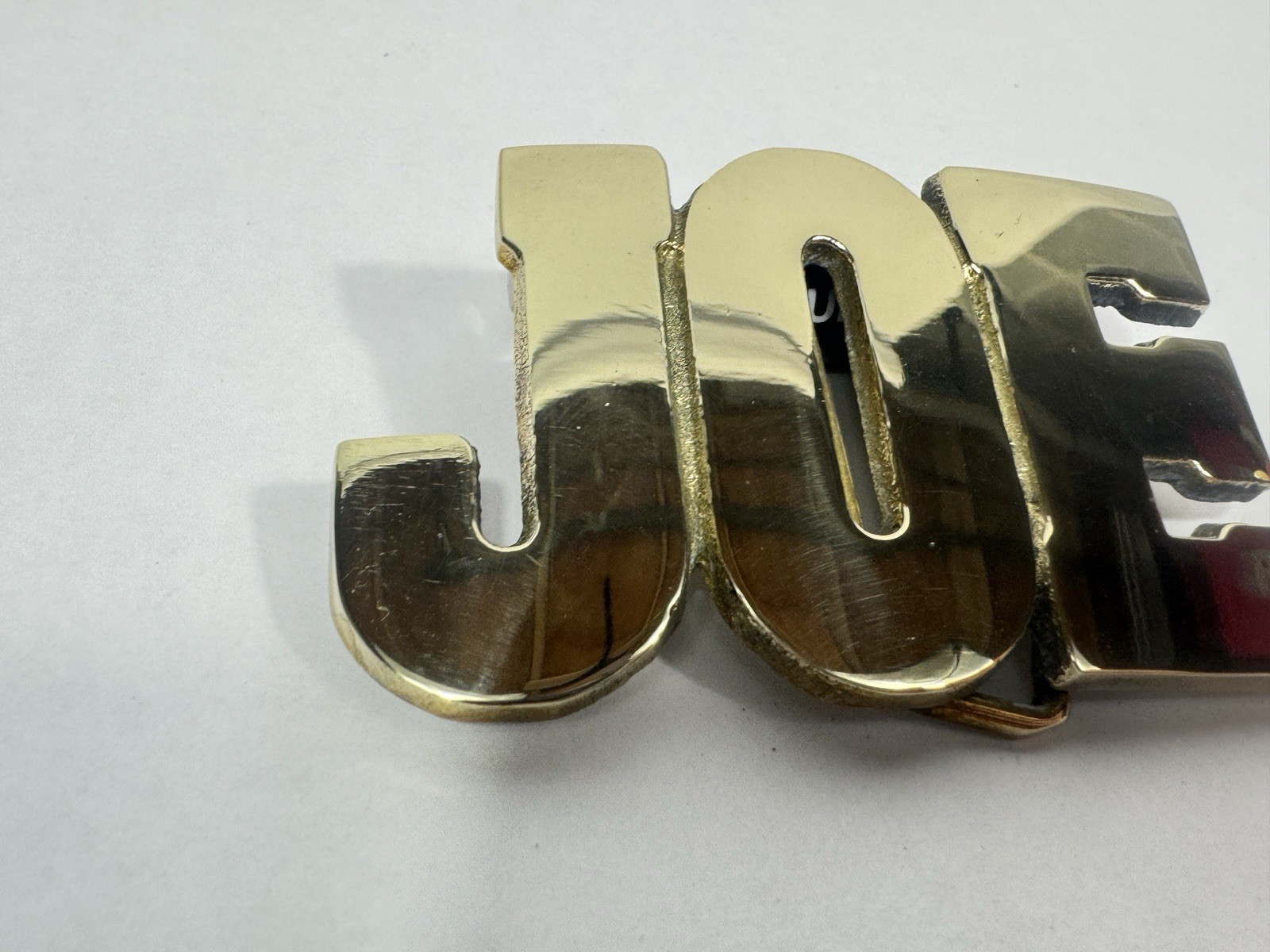 как выглядит Custom Name JOE Vintage 1970s Solid Brass Black Letter Belt Buckle фото