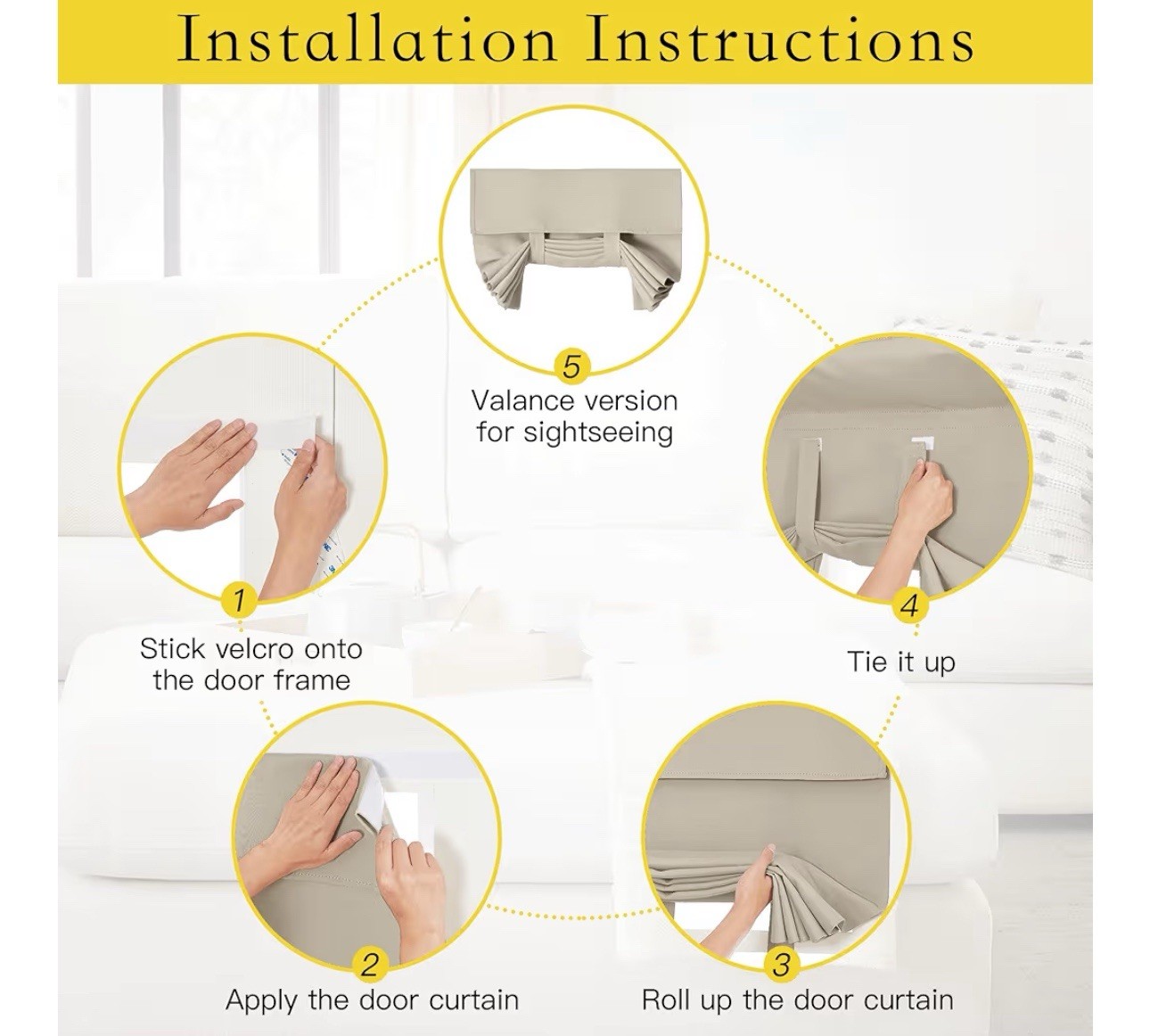 Nicetown French door curtain dark privacy front/back 26x64 -1 panel light linen