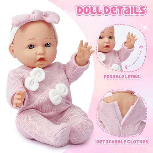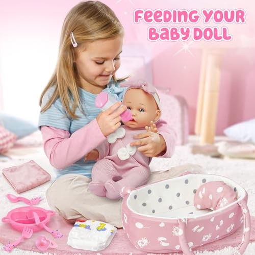 12 Soft Baby Doll Set with Accessories Bassinet Carrier, 13 Pcs First