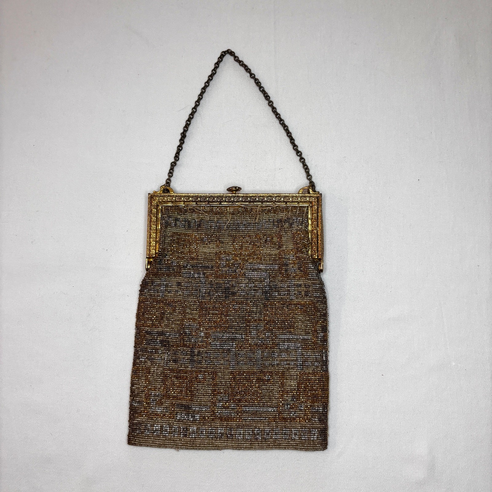 Antique 1900s French Micro-Steel Seed Bead Purse Gold Toned Metal Frame AS IS