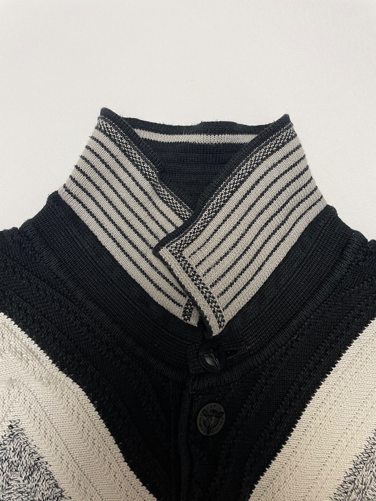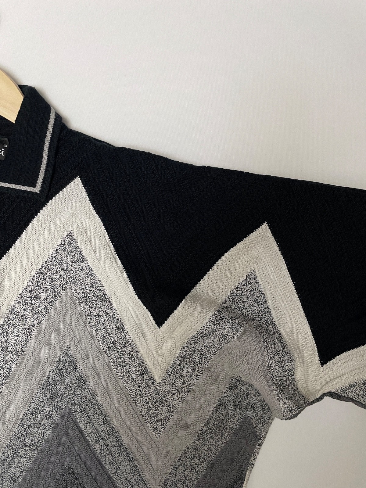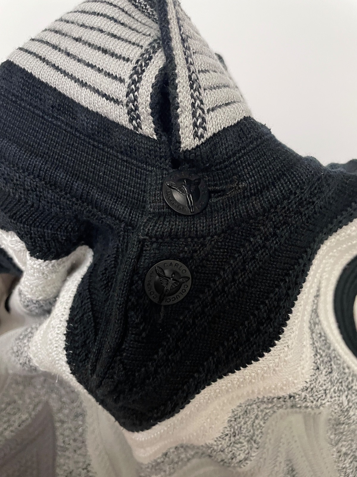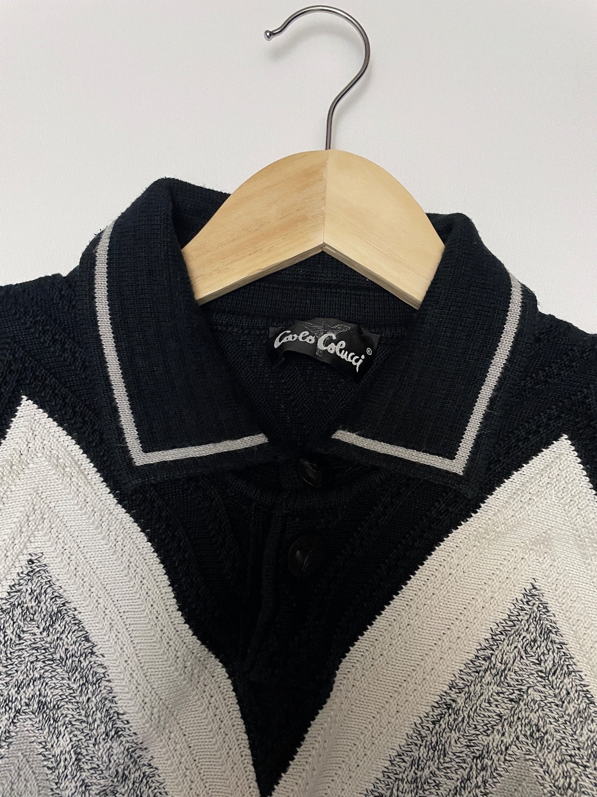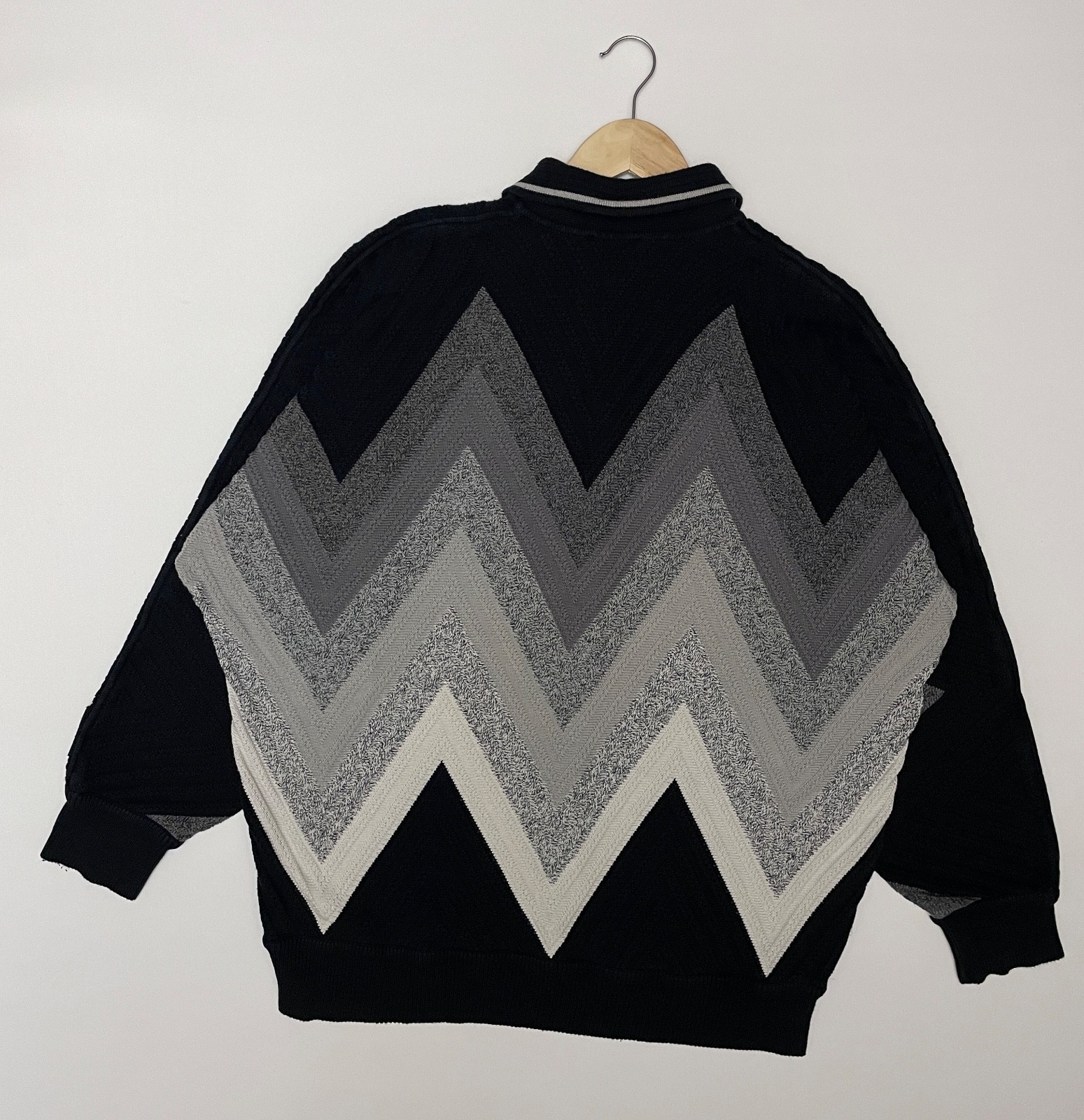 Vtg Carlo Colucci 3D Knit Sweater Men s Sz 54 / XL Black Grey Zigzag Chevron