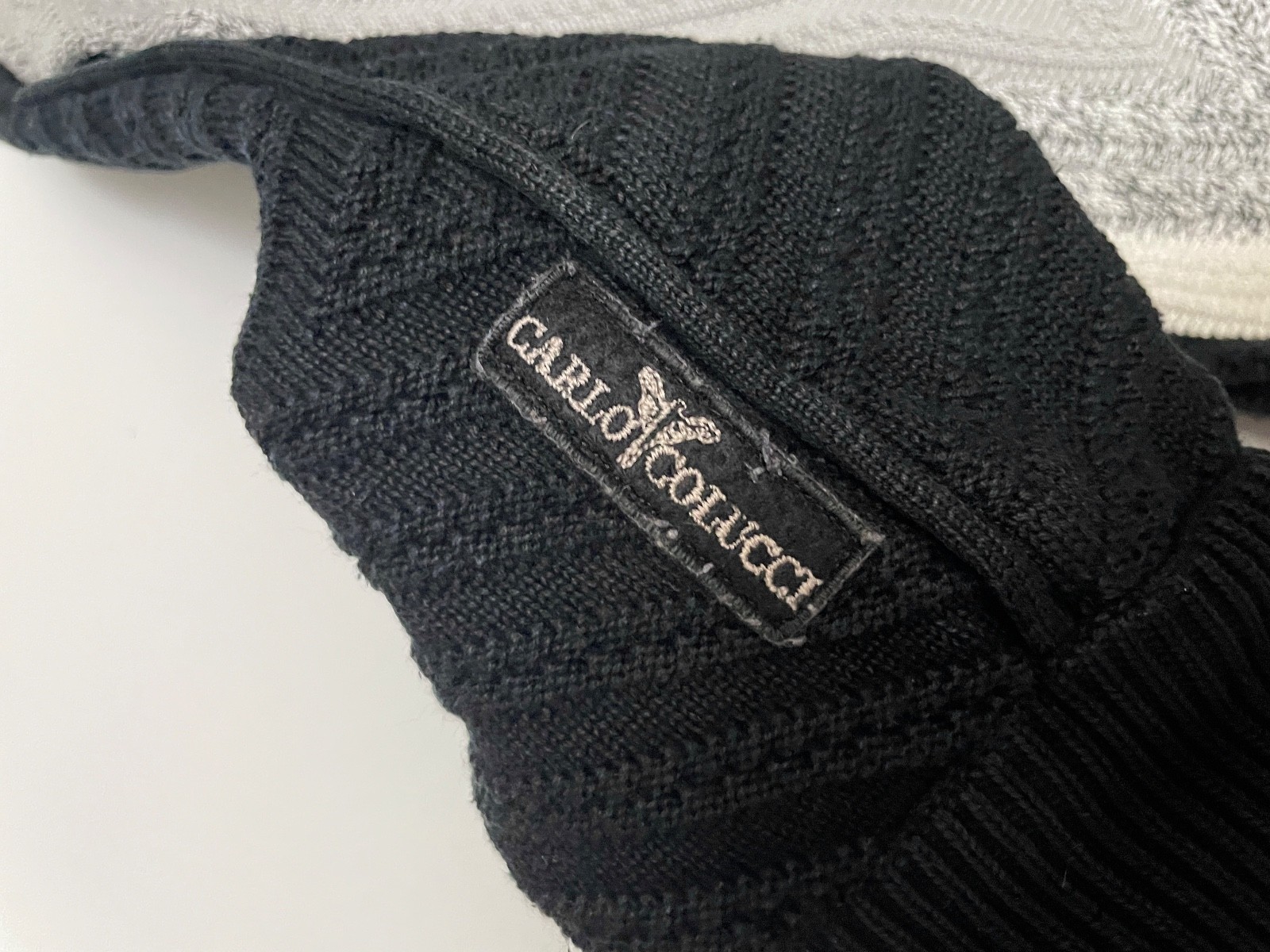 как выглядит Vtg Carlo Colucci 3D Knit Sweater Men s Sz 54 / XL Black Grey Zigzag Chevron фото