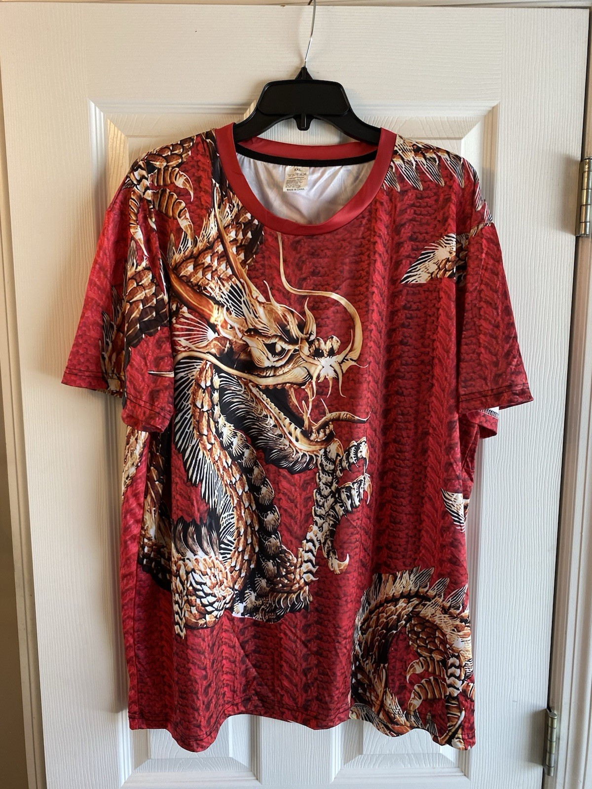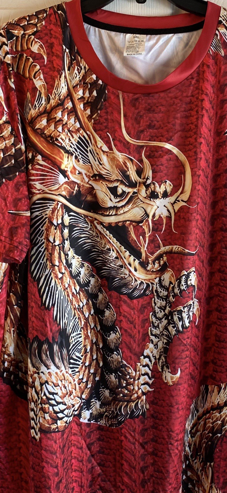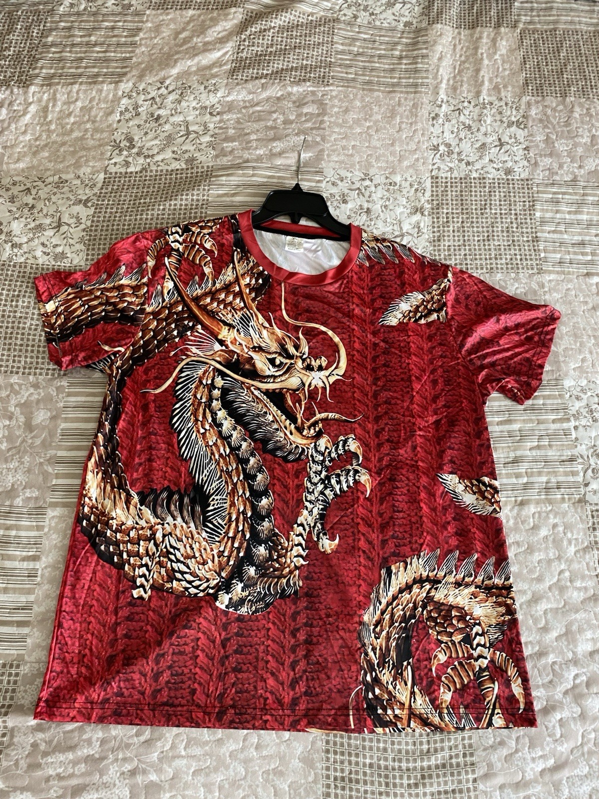 Chinese Dragon Short Sleeve T-shirt Mens XXL Polyester Read Description