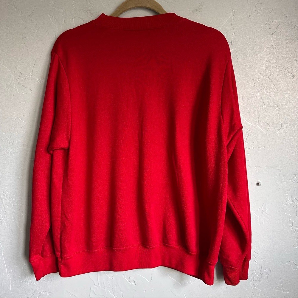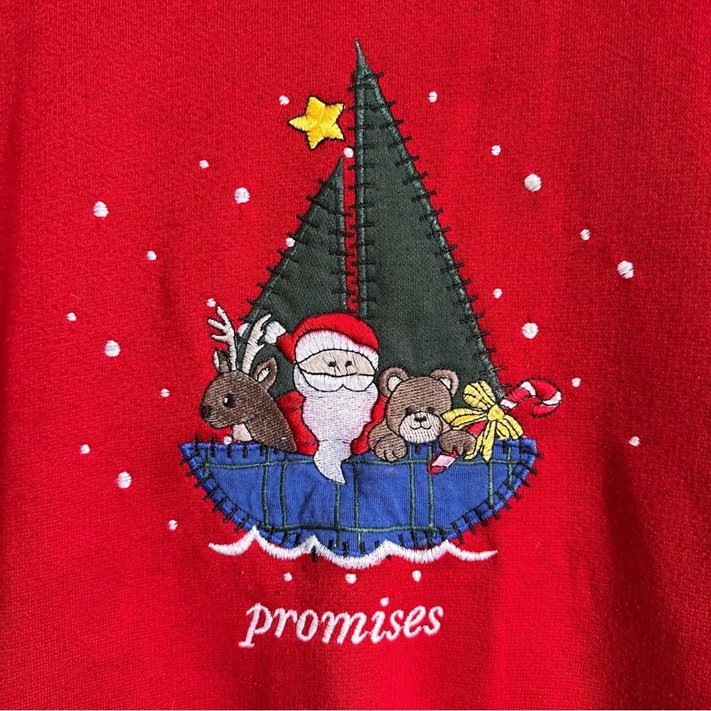 как выглядит Vintage 80s Embroidered Christmas Red Sweatshirt Cottagecore Teddy Bear M/L фото