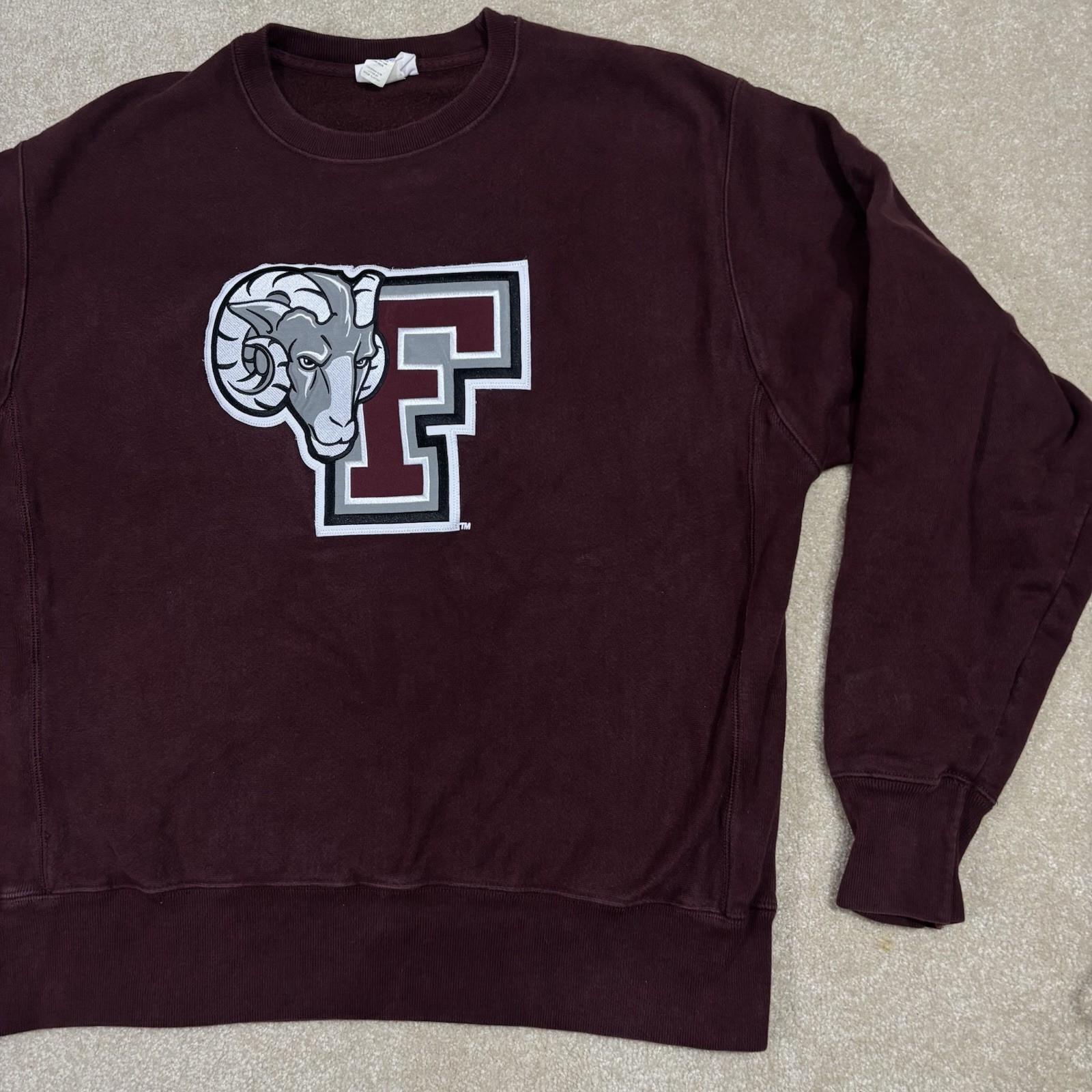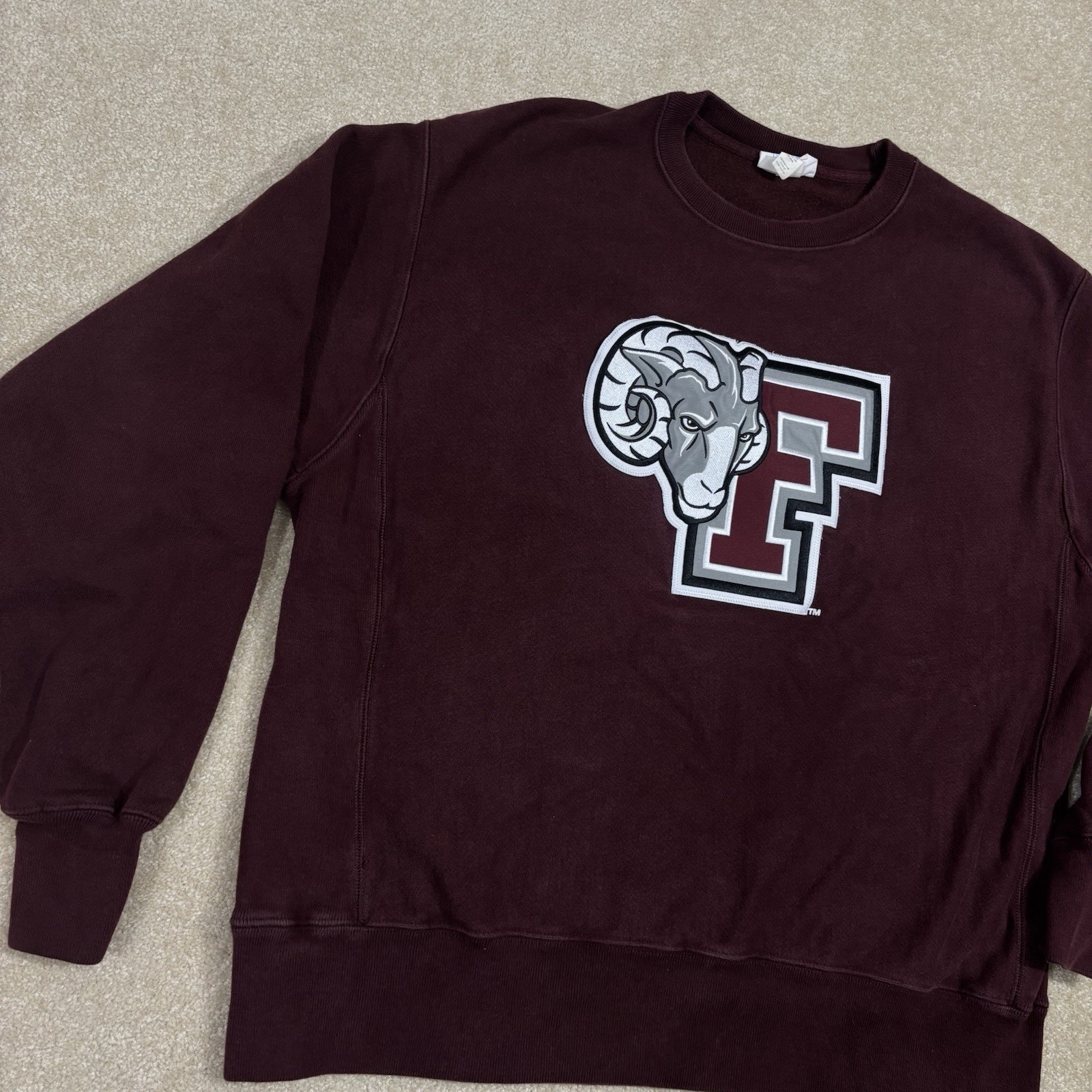 Fordham University Rams Champion Reverse Weave Sweatshirt Large Maroon Retro