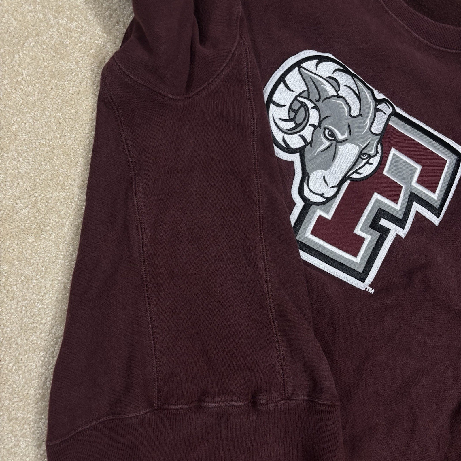 как выглядит Fordham University Rams Champion Reverse Weave Sweatshirt Large Maroon Retro фото
