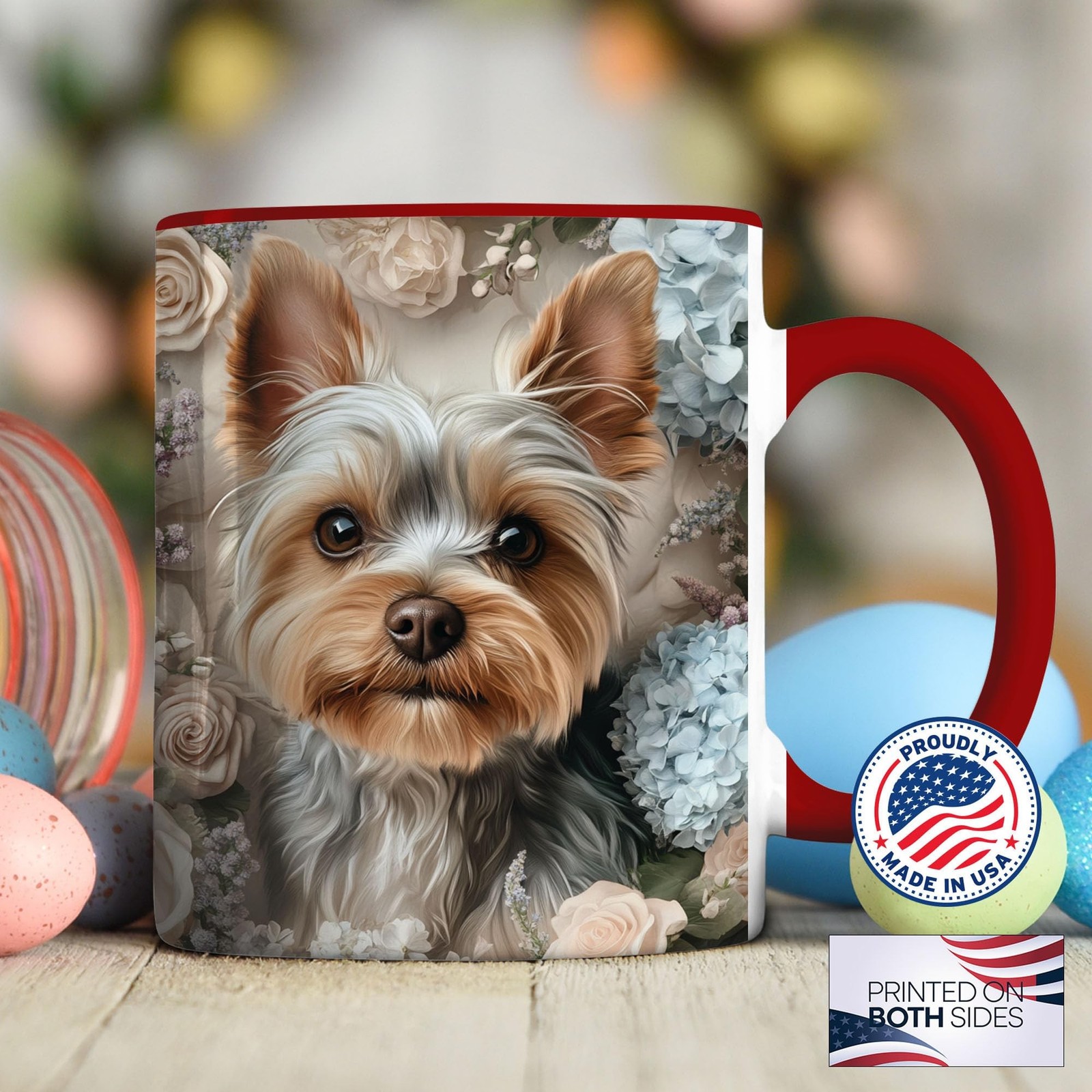 Yorkshire Terrier Floral Ceramic Mug, Adorable Yorkie Coffee Mug with Elegant...