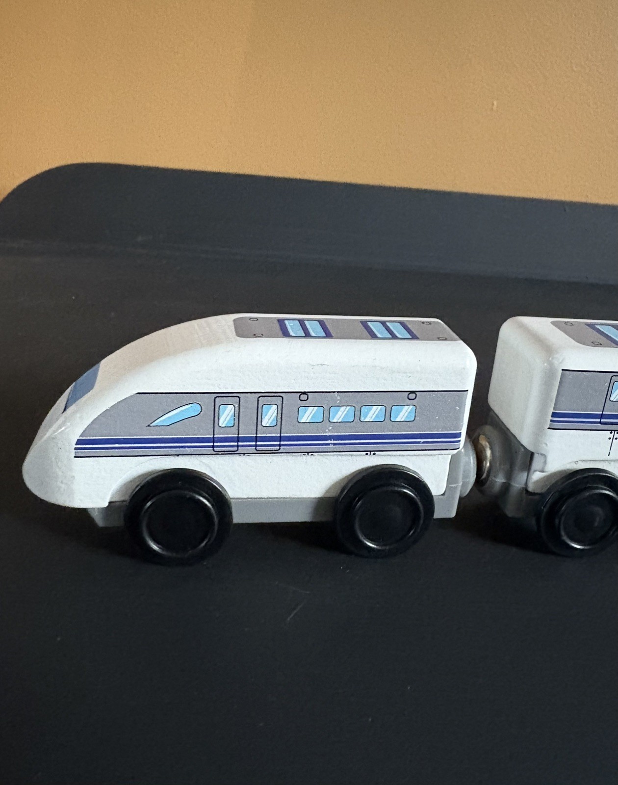 Kid craft 3 High Speed Bullet Train Engines Car Blue White Wooden Magnetic Car