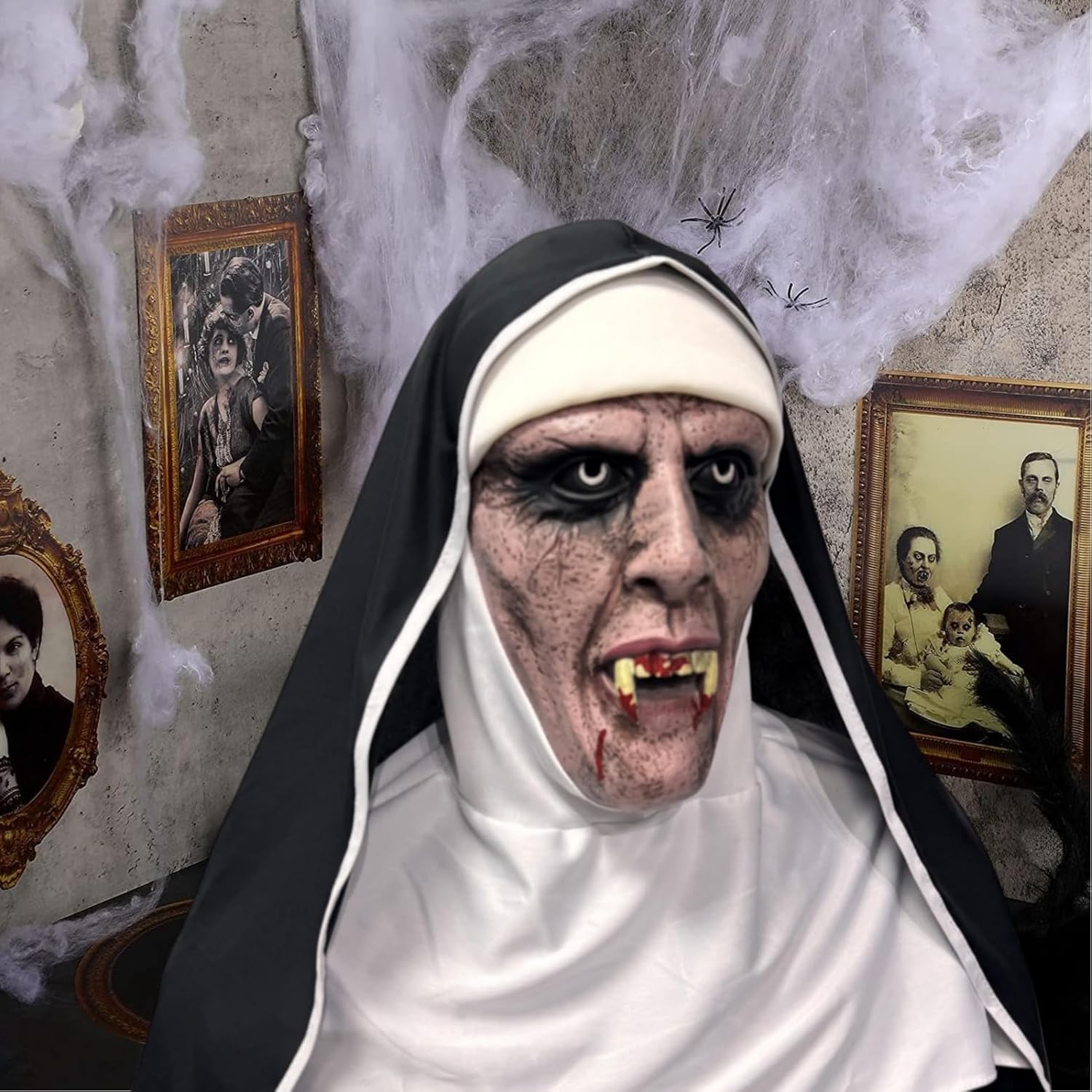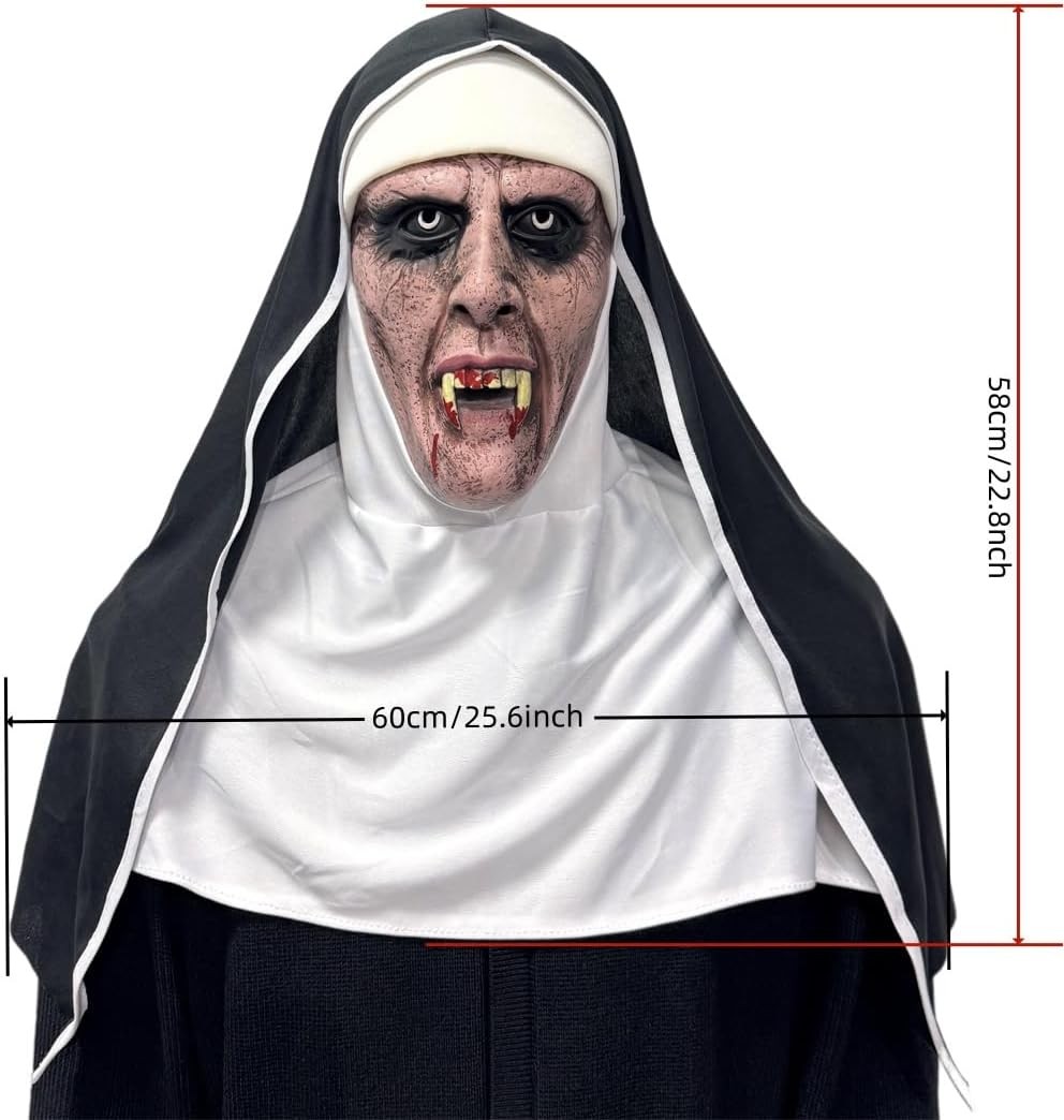 • NTSWZYS Full Head Realistic Evil Nun Mask with Headscarf, Scary Nun Costume Mask