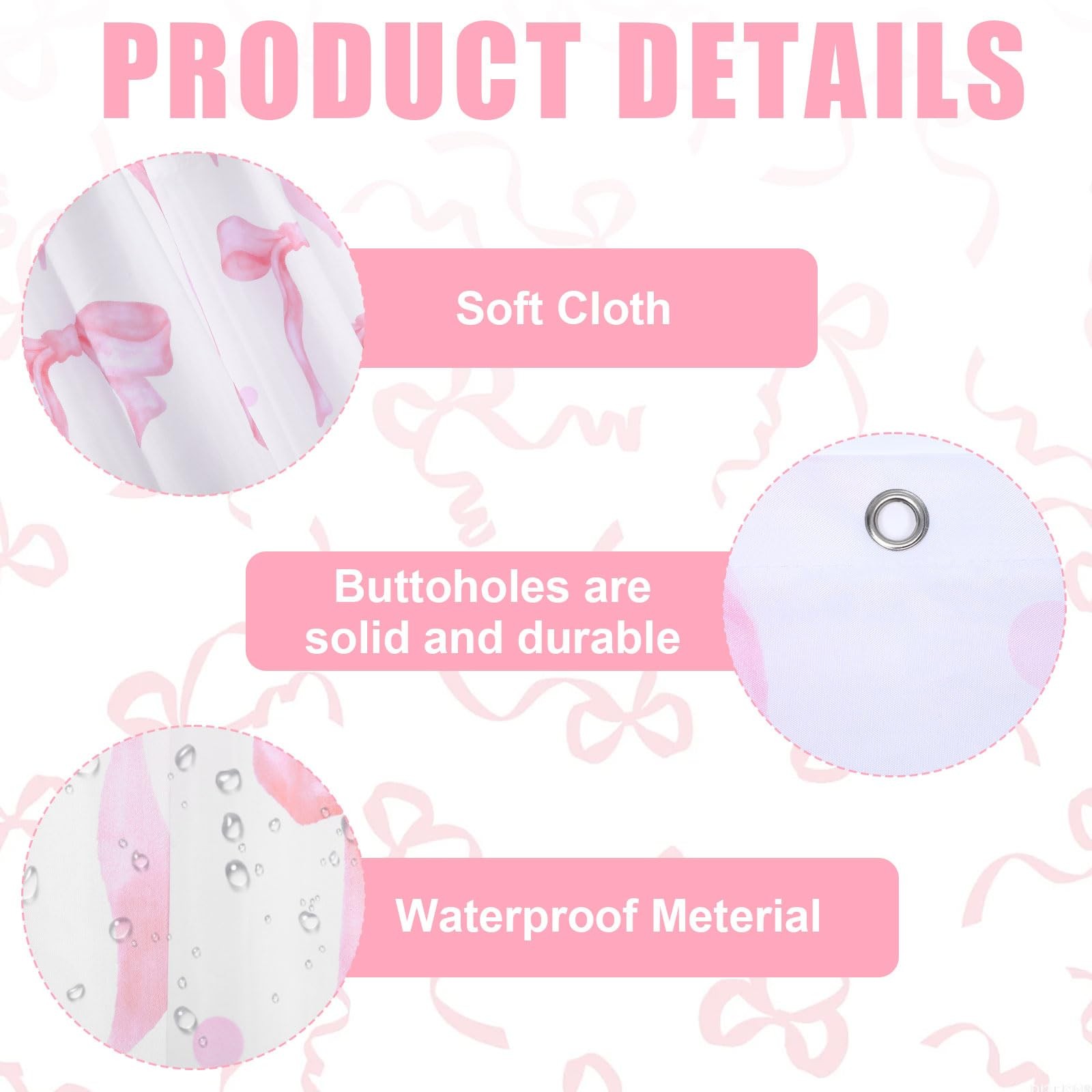 как выглядит Bow Cute Pink Shower Curtain Preppy Girly Aesthetic Waterproof 70x70 Inch фото