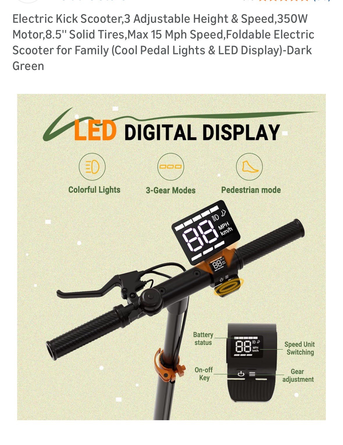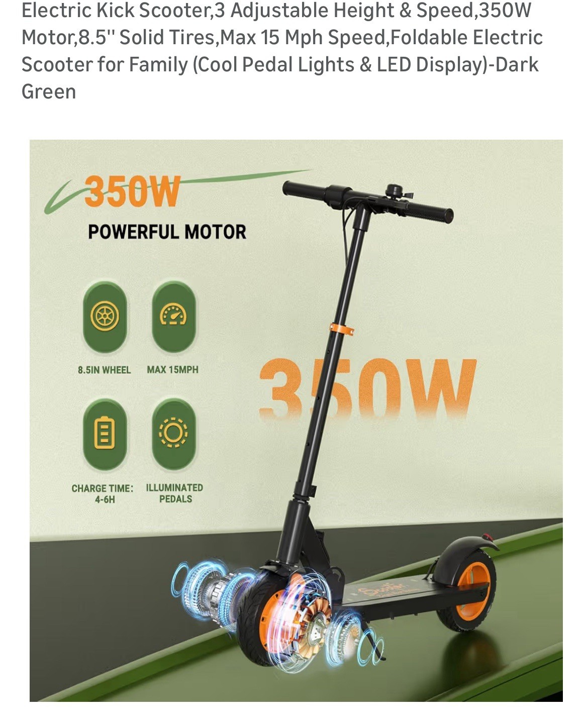E Scooter, 3 Adjustable Speeds ,350W Motor, 15MPH, 15 mile range