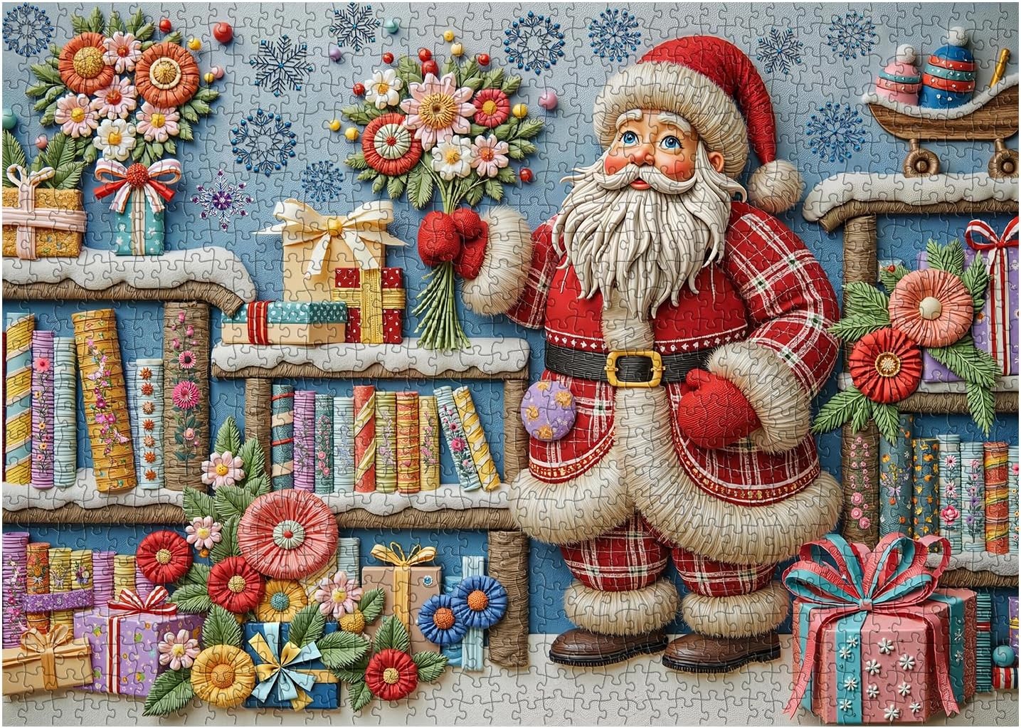 Christmas Puzzles for Adults 1000 Piece Santa Claus Bookshelf Holiday Library