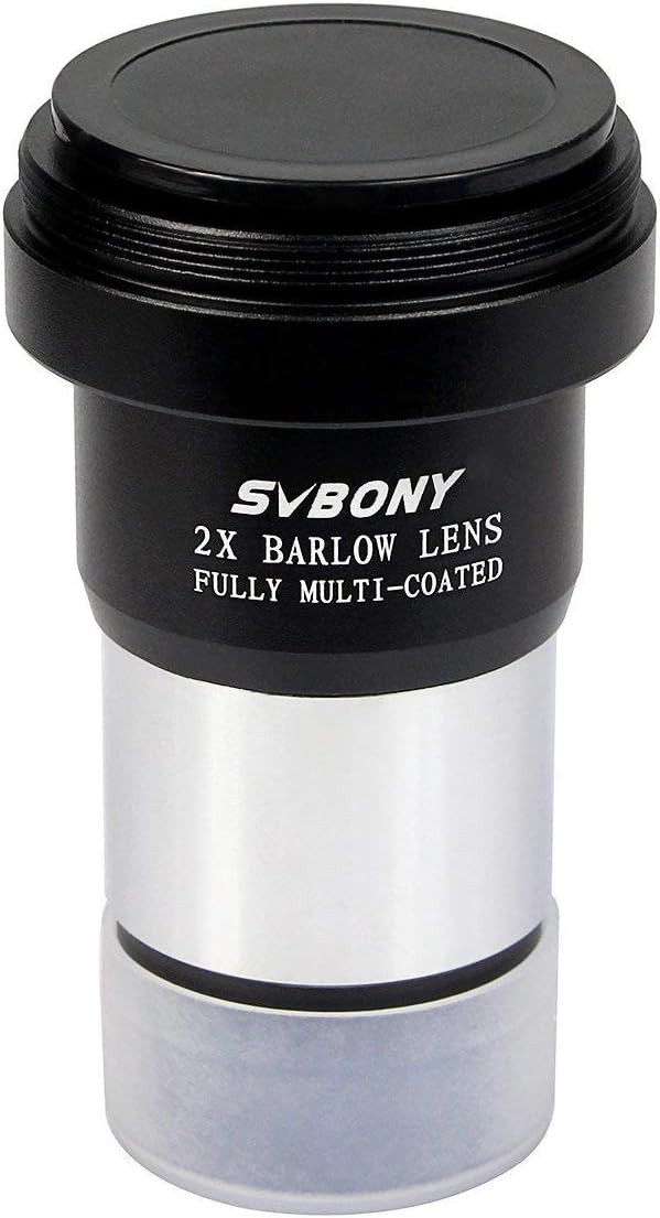 Multi-Coated 2X Barlow Lens for Telescopes - M42 Thread, Dust Caps Included