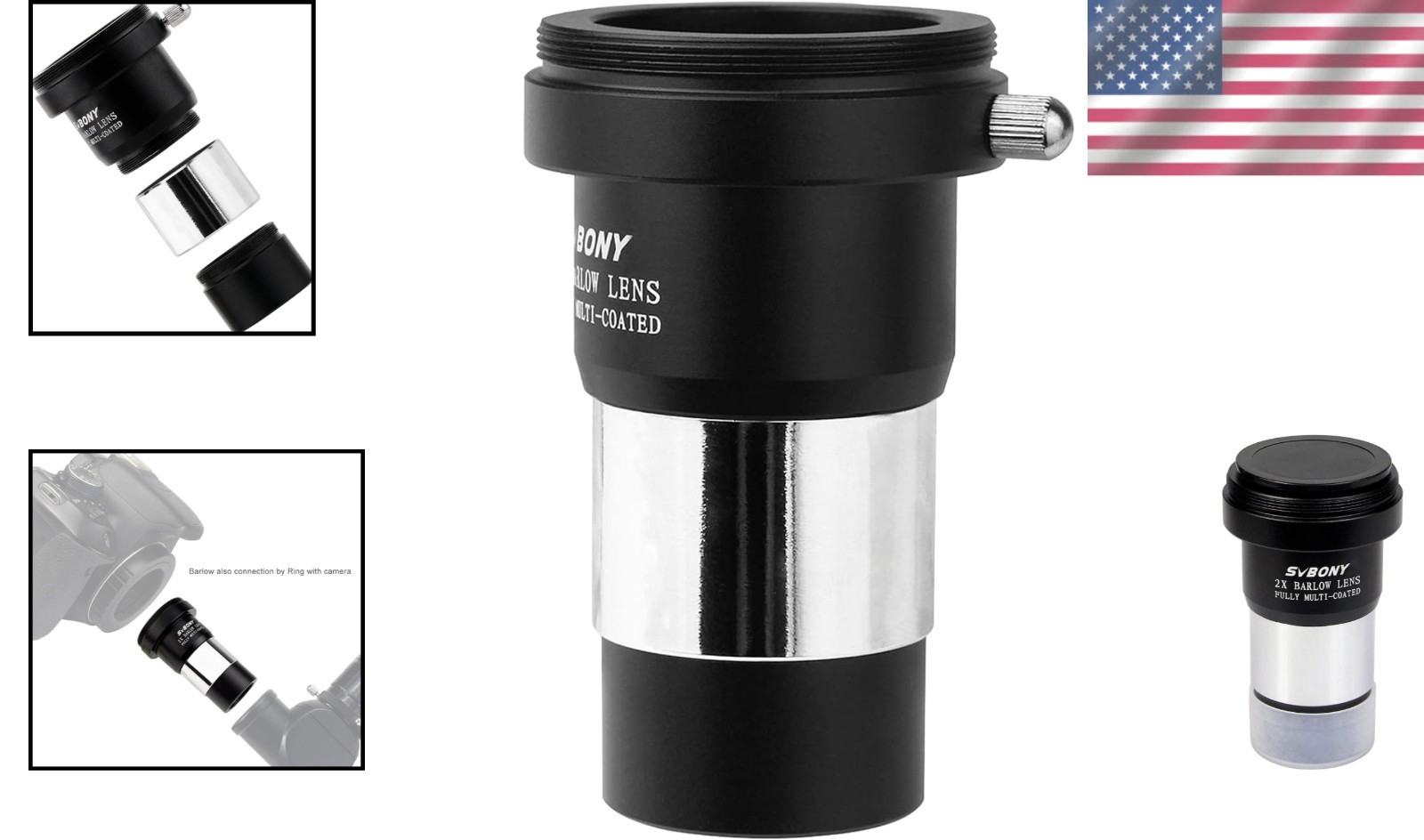как выглядит Multi-Coated 2X Barlow Lens for Telescopes - M42 Thread, Dust Caps Included фото