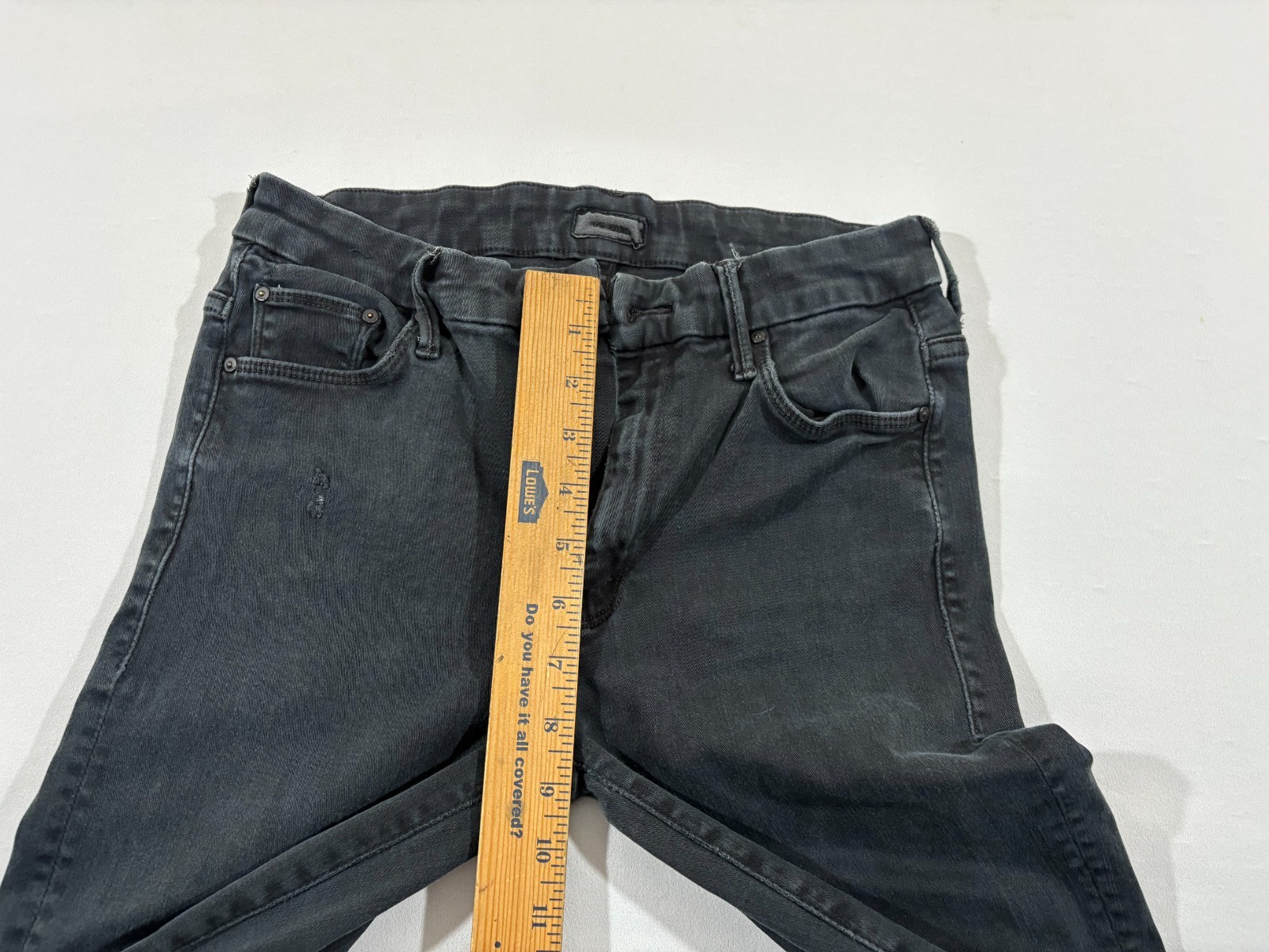 как выглядит Mother High Waisted Looker Ankle Fray Jeans Womens Stretch Denim Black Sz 27 фото