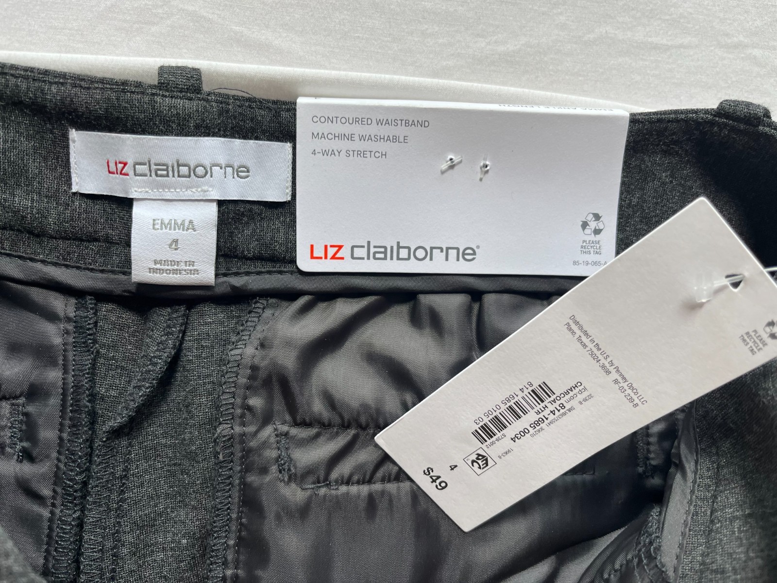 как выглядит Liz Claiborne Emma Womens Charcoal Gray Heathered Straight Leg Pants Size 4 NWT фото