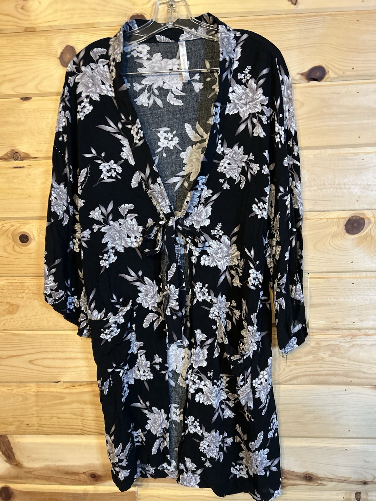 Spiritual Gangster Robe Kimono Cardigan Womens One Size Pocket Tie Front Black H