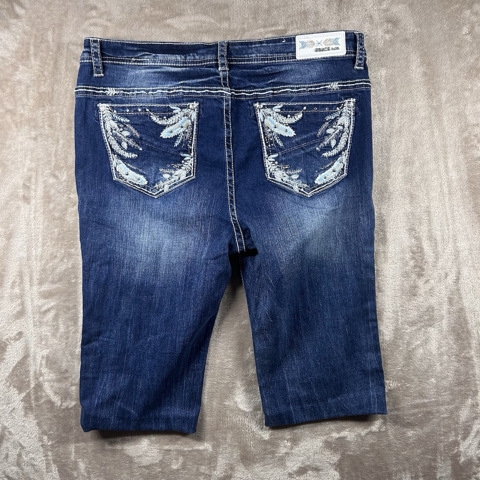как выглядит Grace in LA Jeans P Straight Womens Size 18 Short Cut Thick Stitch Distressed фото