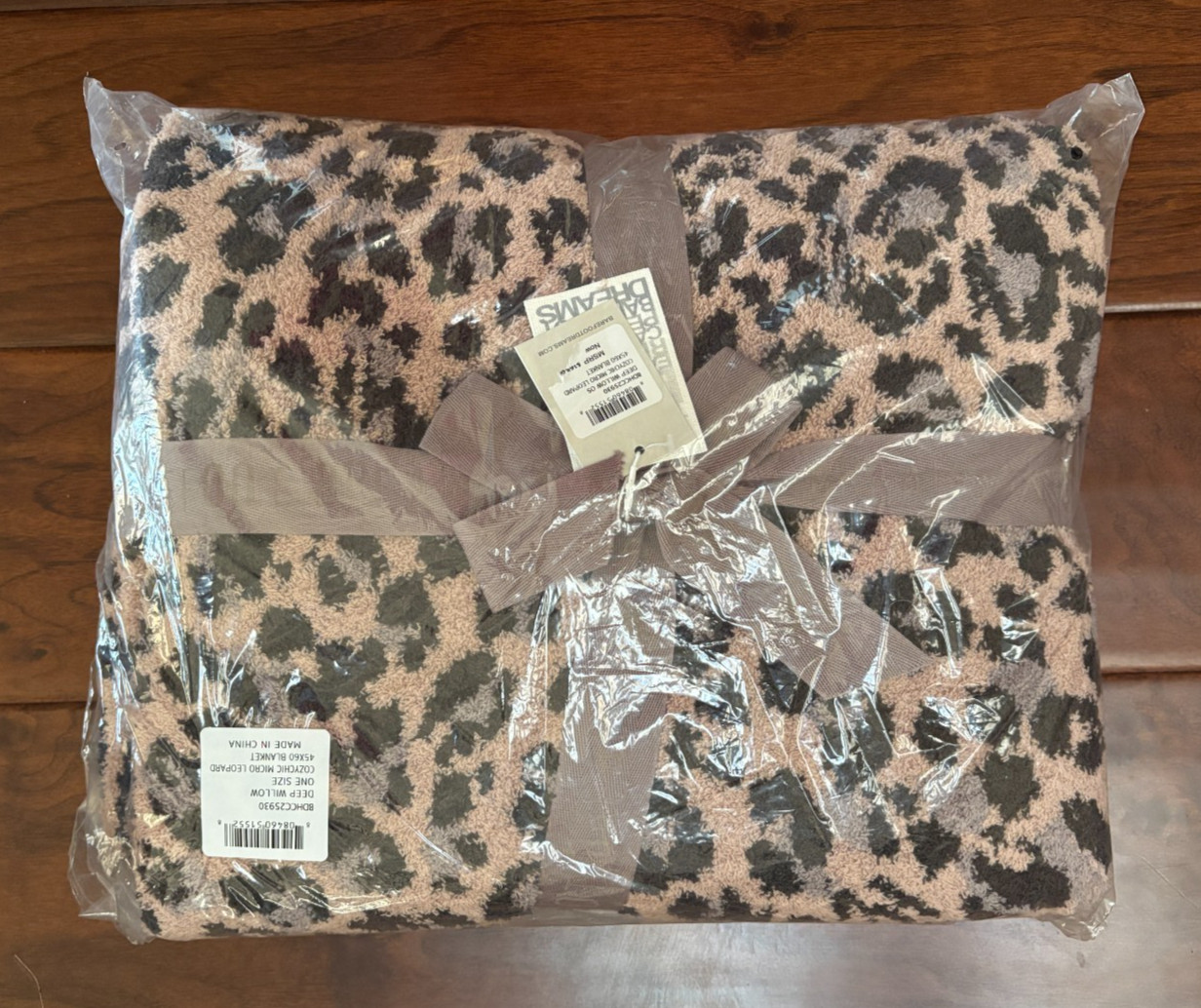 NWT Safari Micro Leopard Deep Willow BAREFOOT DREAMS CozyChic Throw Blanket