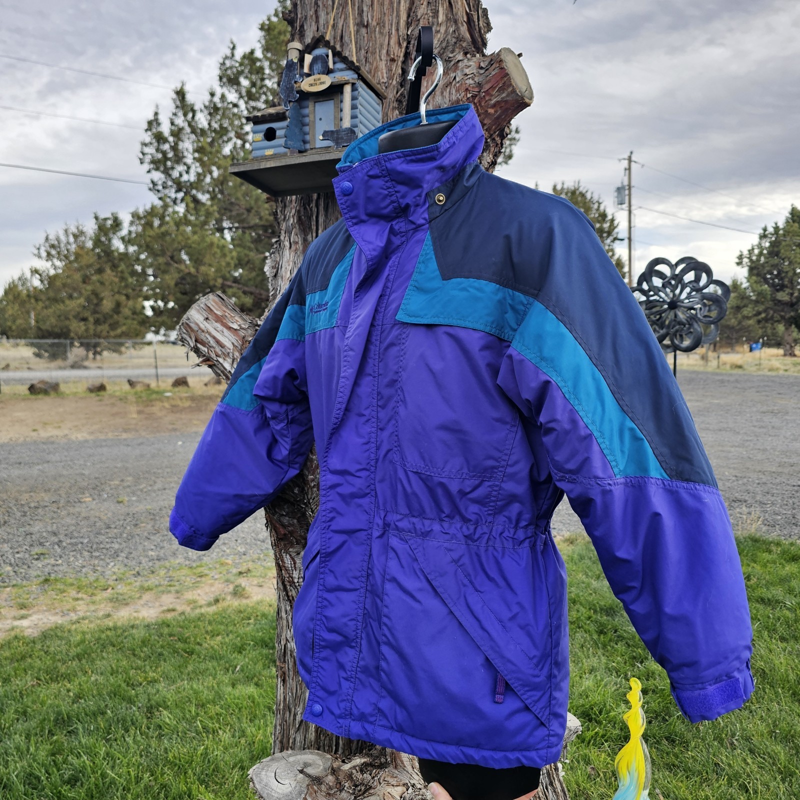 как выглядит Vintage COLUMBIA YOUTH L 14/16 Teal Purple Color Block Puffer Ski Coat Jacket фото