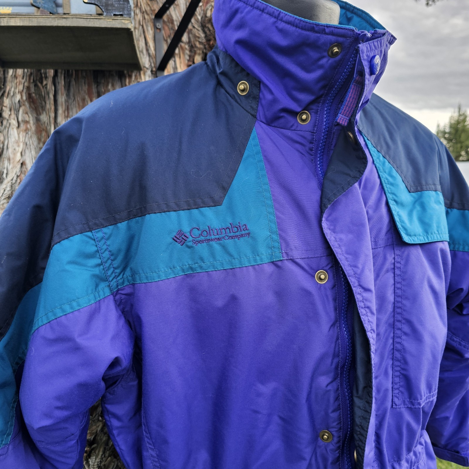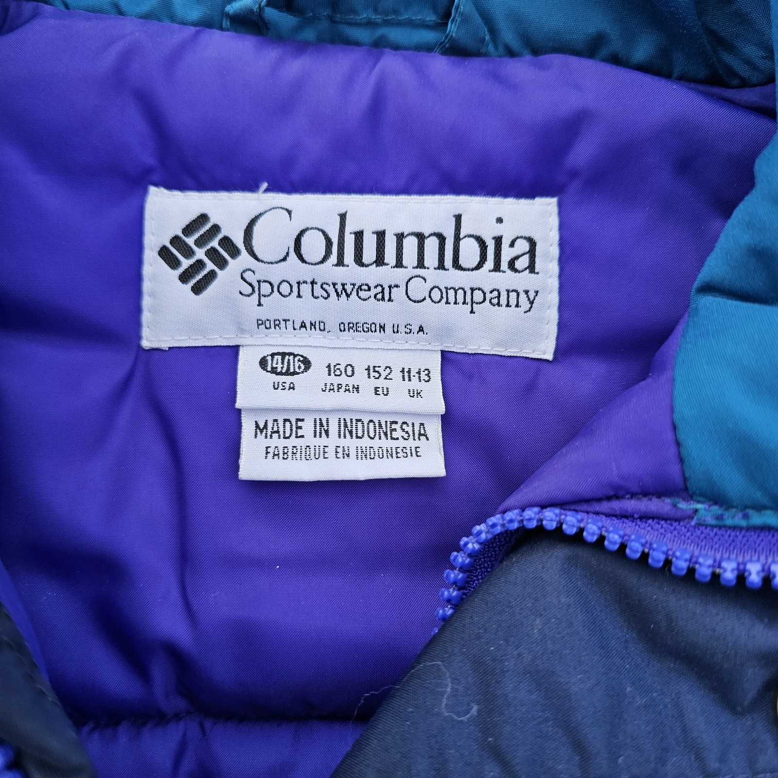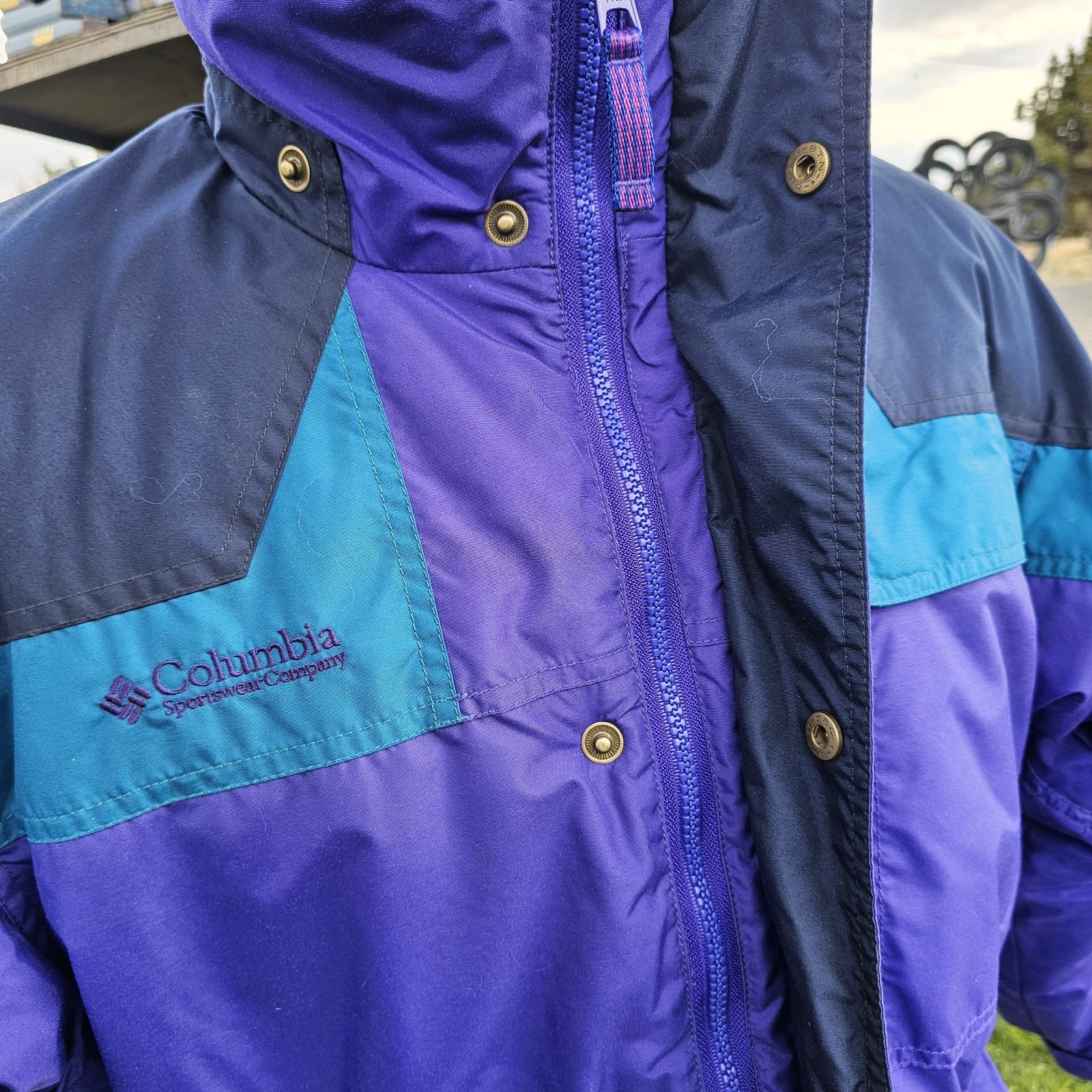 Vintage COLUMBIA YOUTH L 14/16 Teal Purple Color Block Puffer Ski Coat Jacket