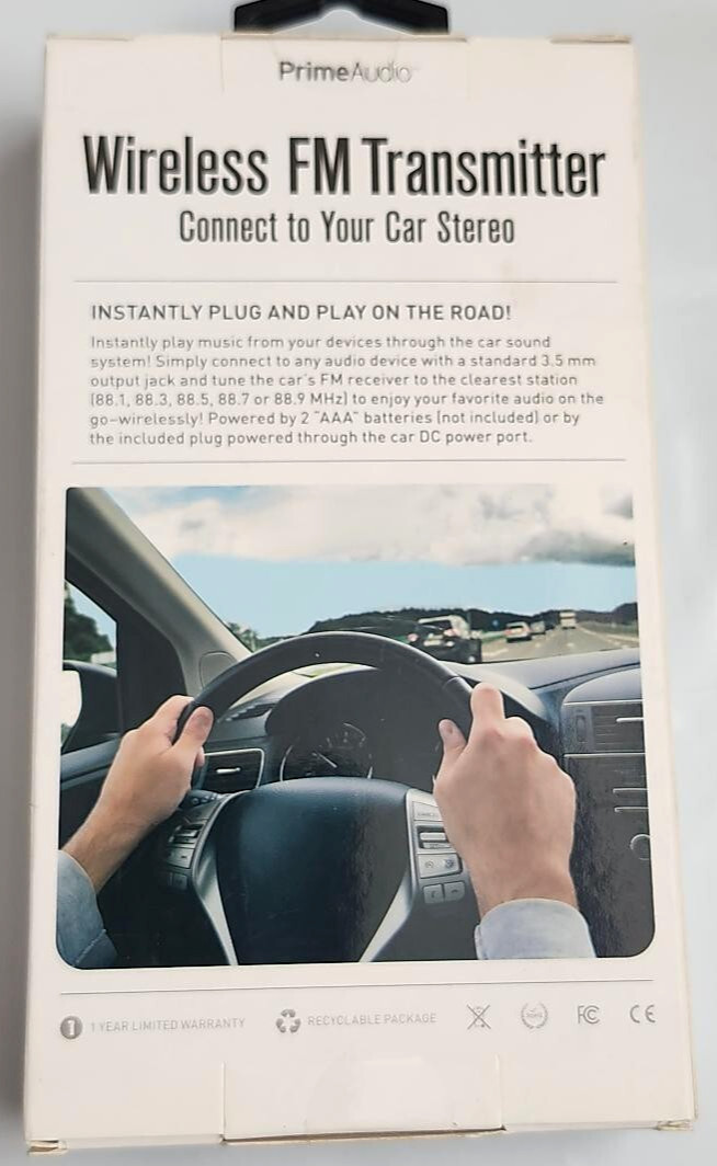 Prime Audio Wireless FM Transmitter Car Stereo Music For iPhone Android, New