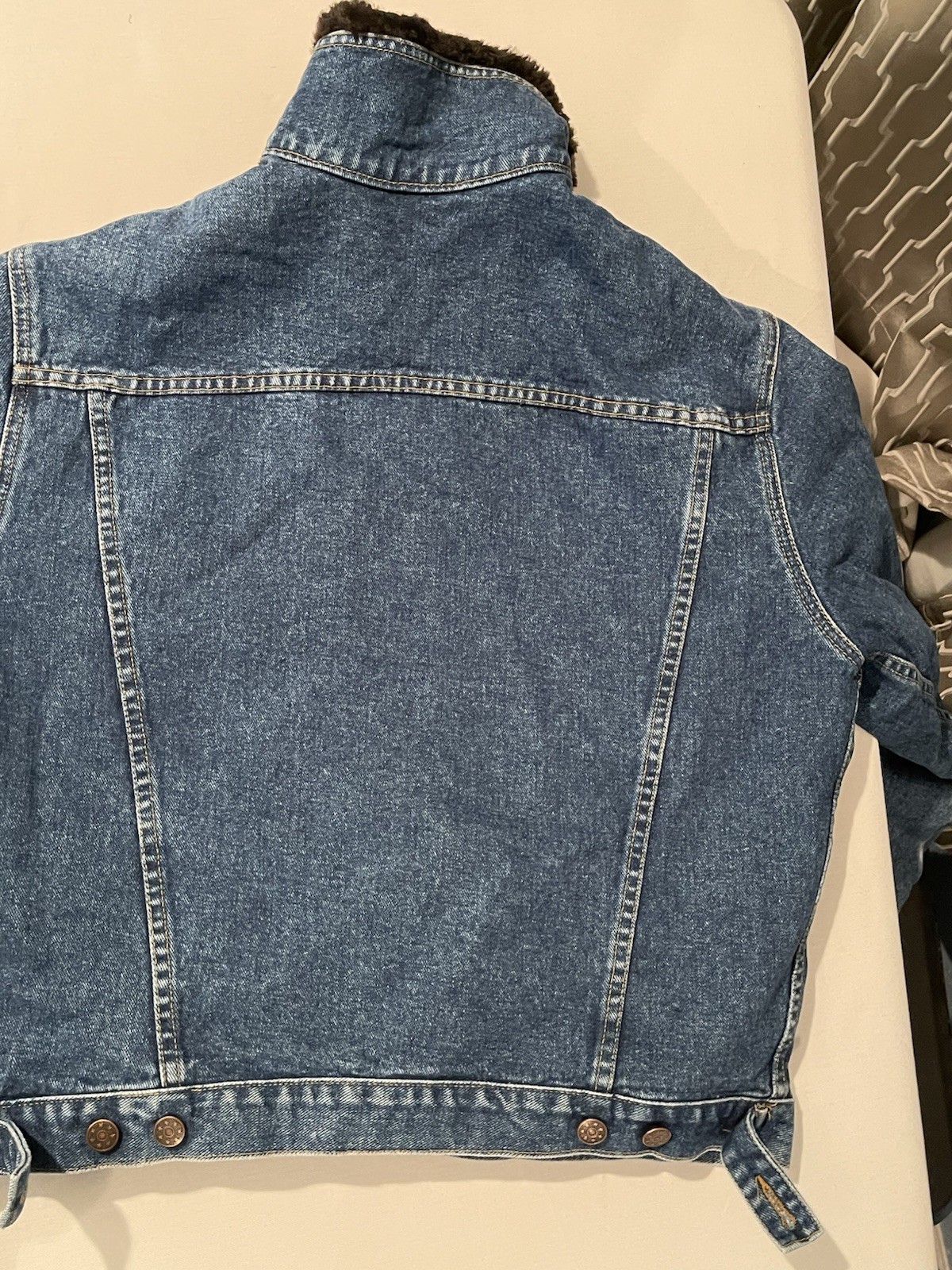 как выглядит Vintage USA Made Denim Sherpa Jacket Faux Fur Quilted Lined Rancher Workwear M фото