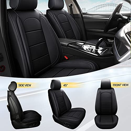 Leather Car Seat Covers with Car Backseat Organizer, FRONT PRIR BLACK