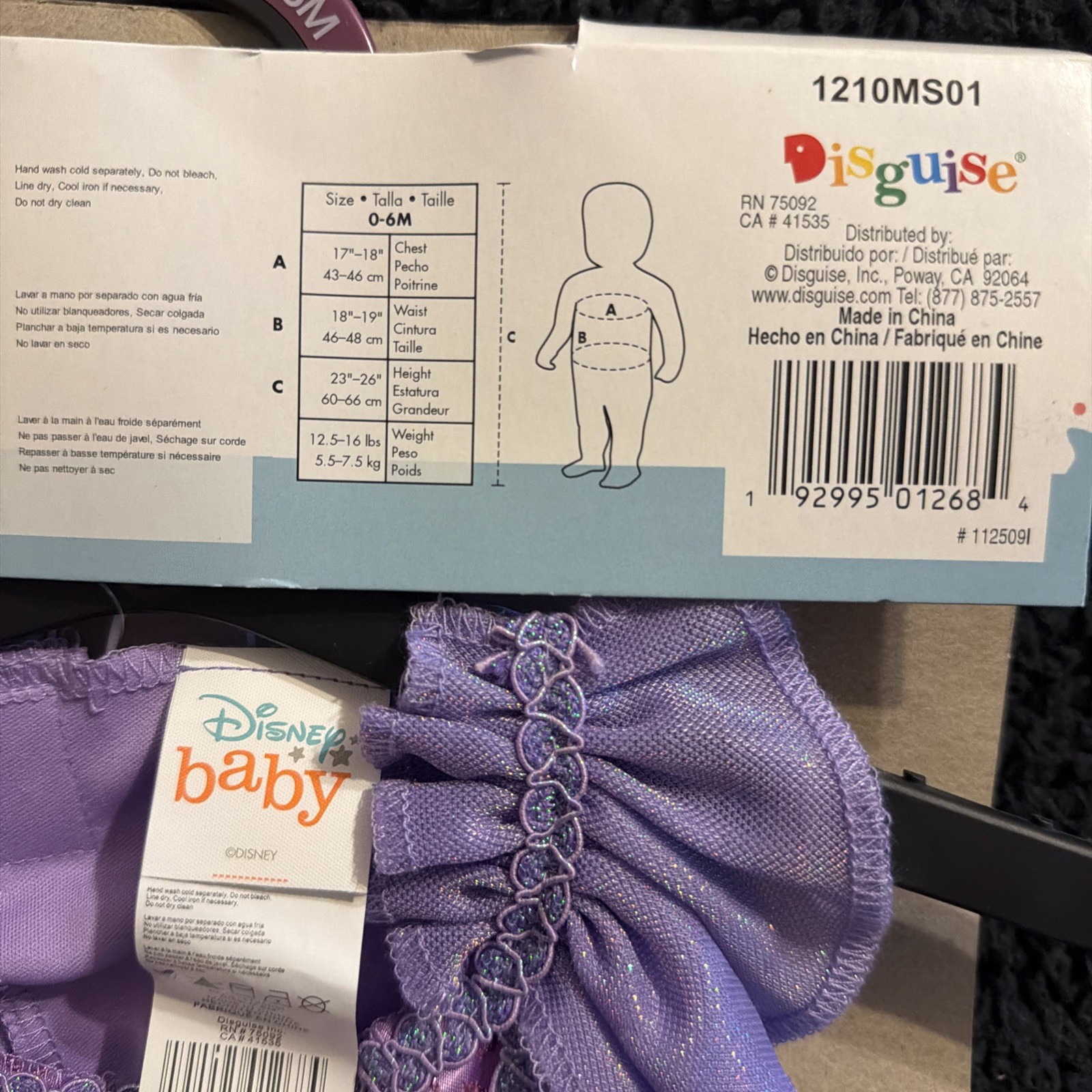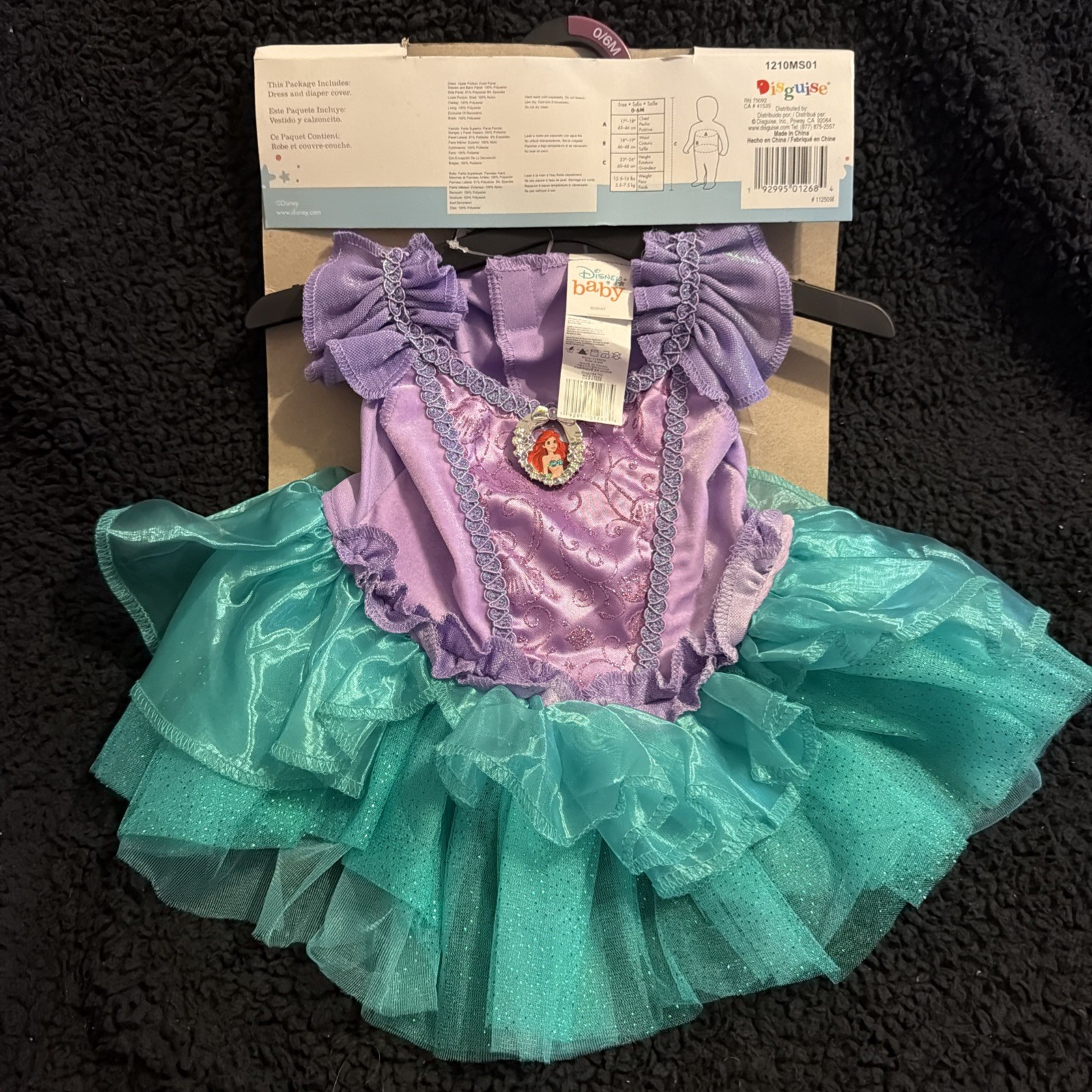 Disney Baby Ariel Purple Tutu Dress Little Mermaid Costume, Size 0 - 6M New Bby1