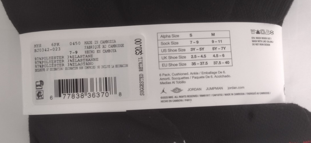 как выглядит Nike Air Jordan Jumpman Youth Black Cushioned Ankle Socks Black 6 Pack 3Y-5Y фото