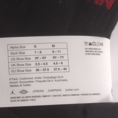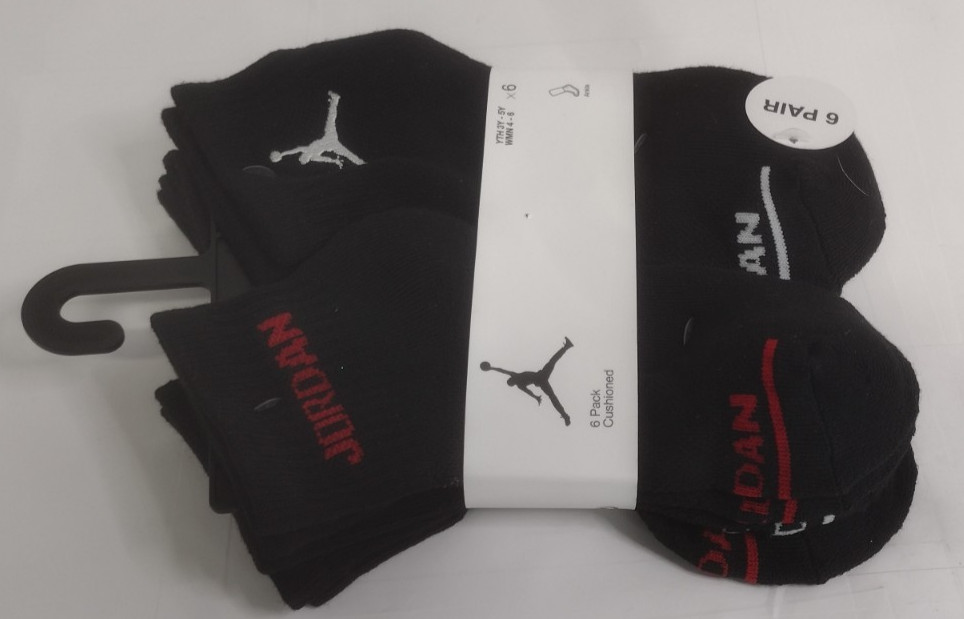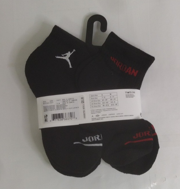 Nike Air Jordan Jumpman Youth Black Cushioned Ankle Socks Black 6 Pack 3Y-5Y