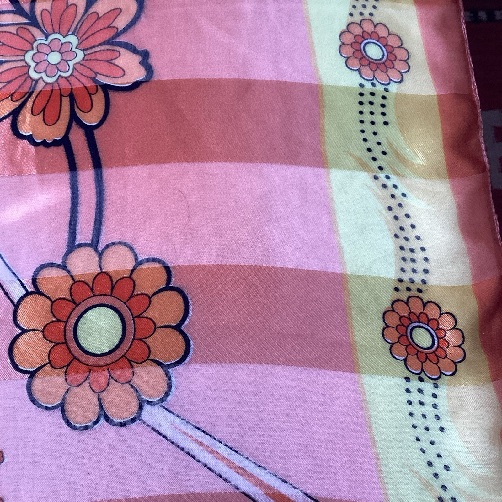 как выглядит Vintage 70 s Silky Scarf Wrap Orange Yellow Paisley 38x38 Mod Hippie Boho Chic фото