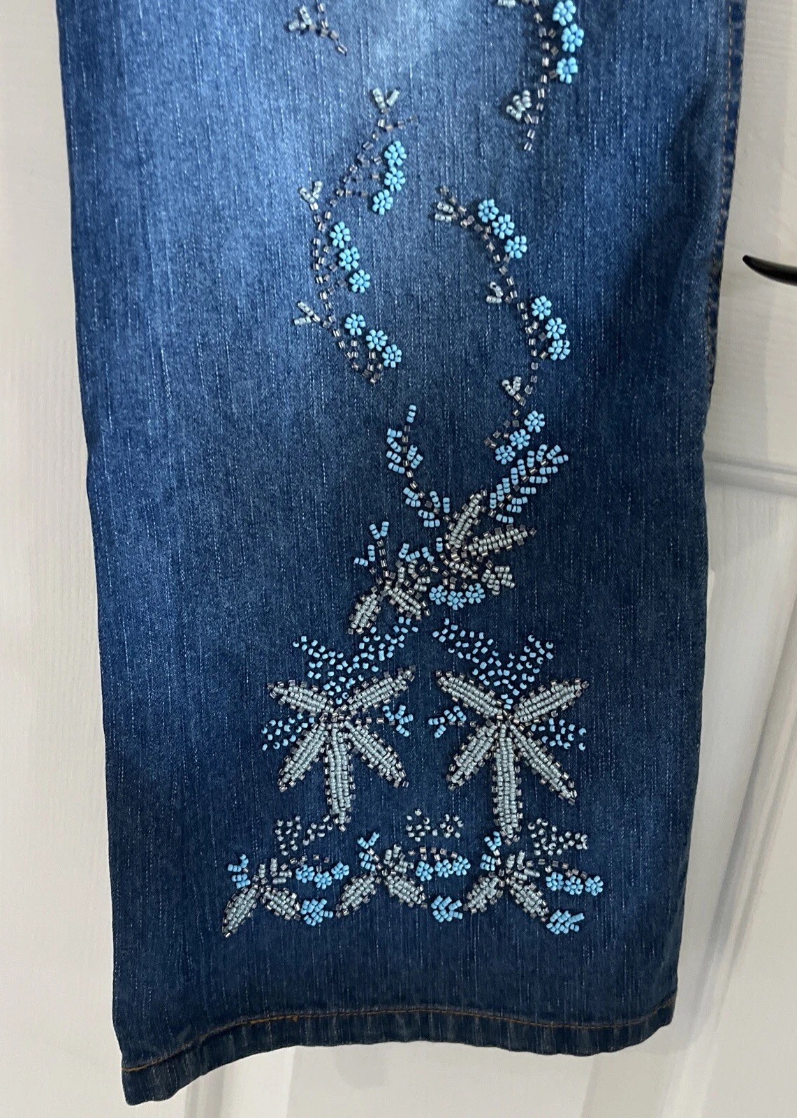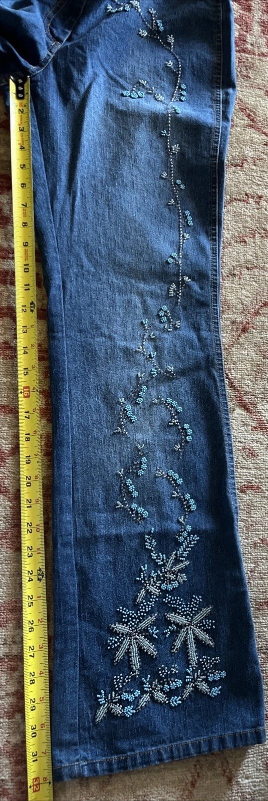Vtg 90s International Concepts INC Boot Cut Blu Beaded Jeans Sz 6 Hong Kong EUC