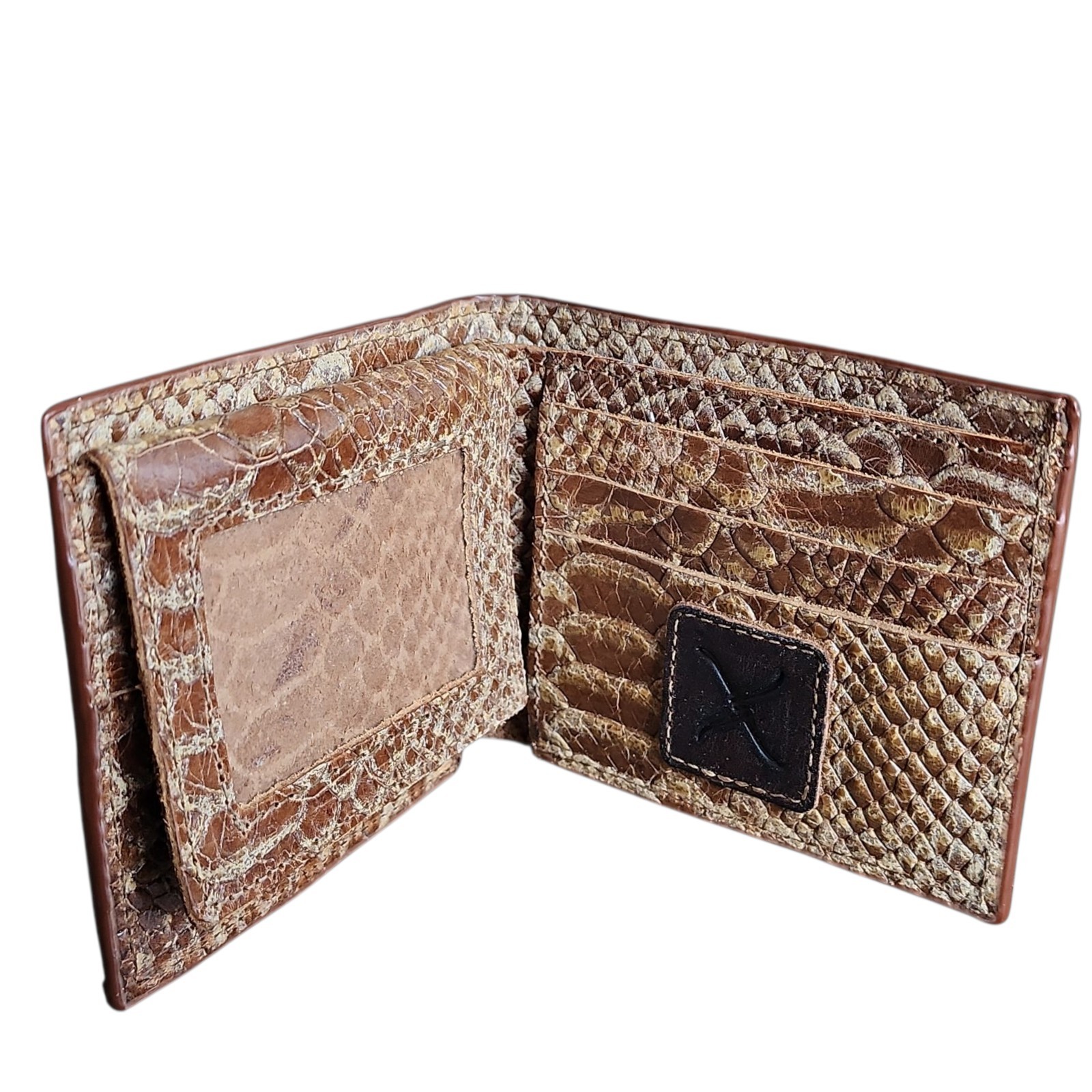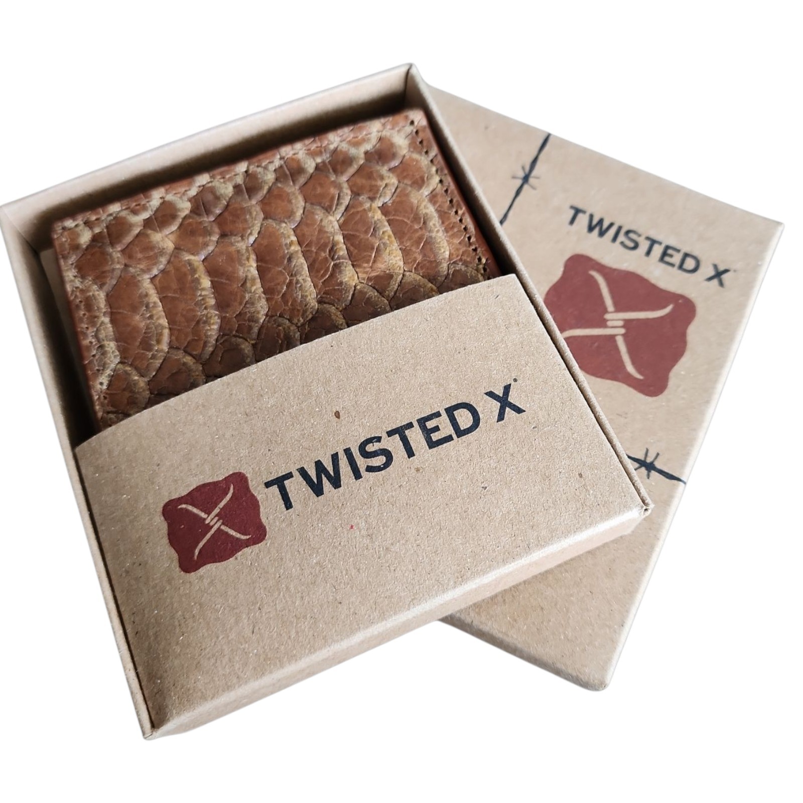 как выглядит Twisted X TXMC-100B Western BiFold Wallet Tan Reptile Print Distressed Leather фото