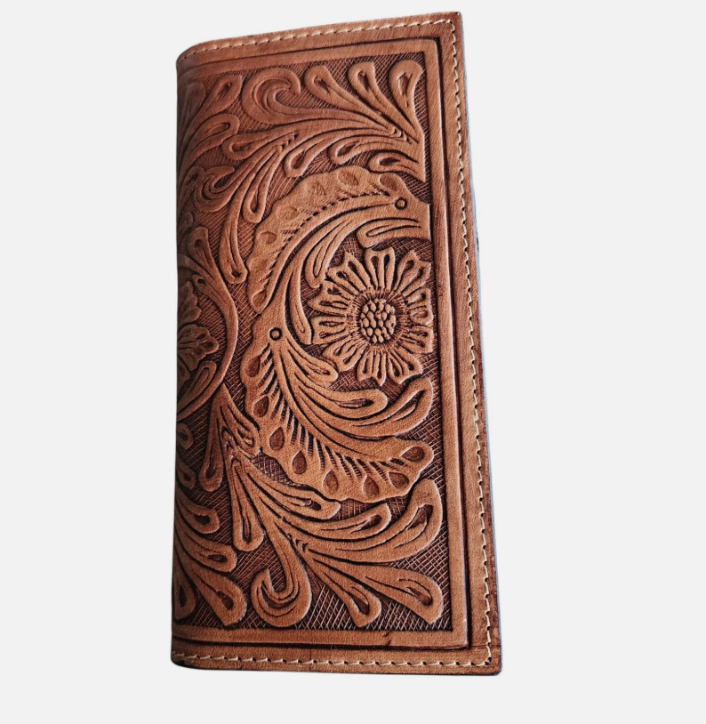 Ranger Belt Co Rodeo Wallet Floral Tooled Genuine Leather Western Tan C1301