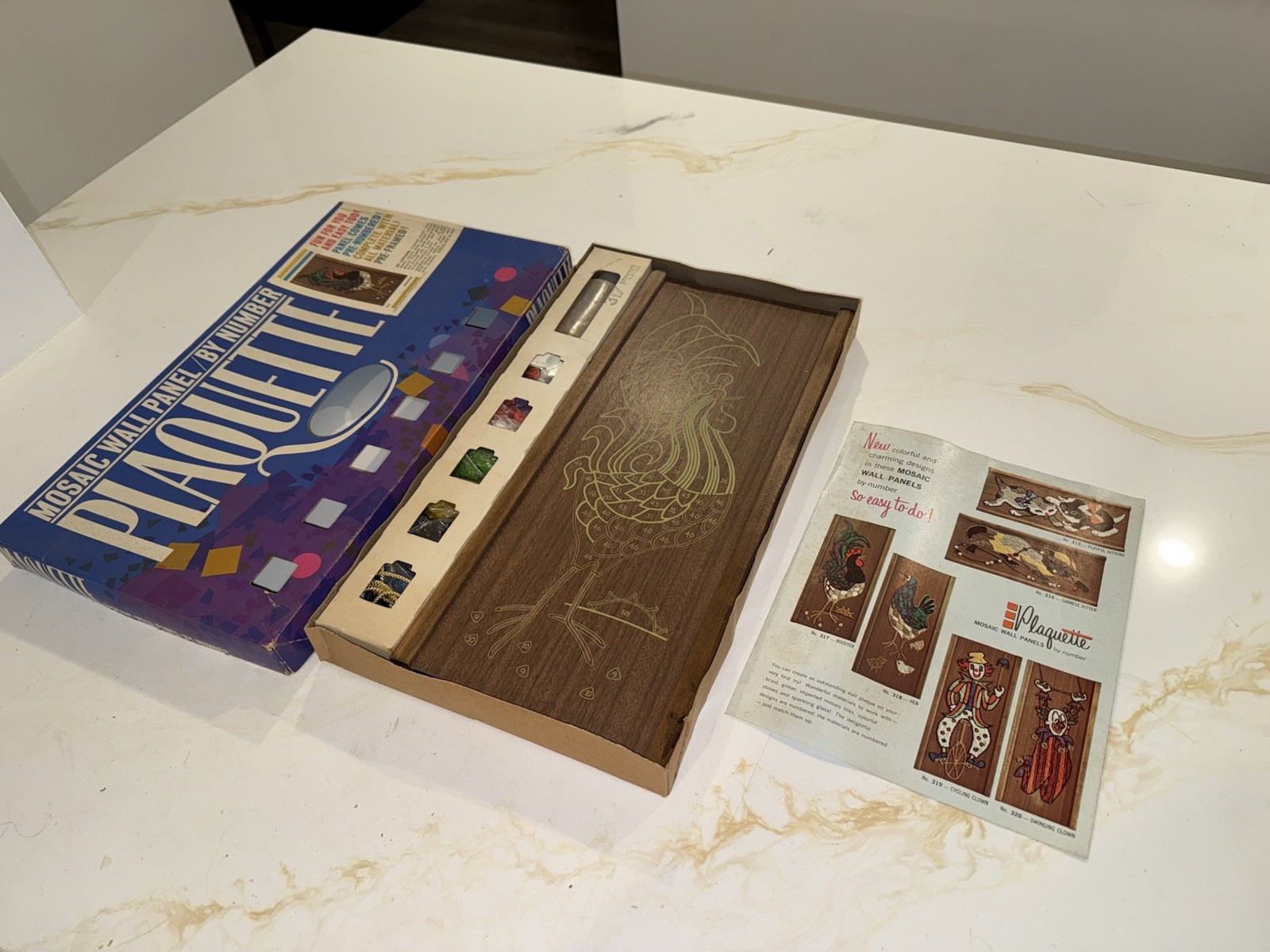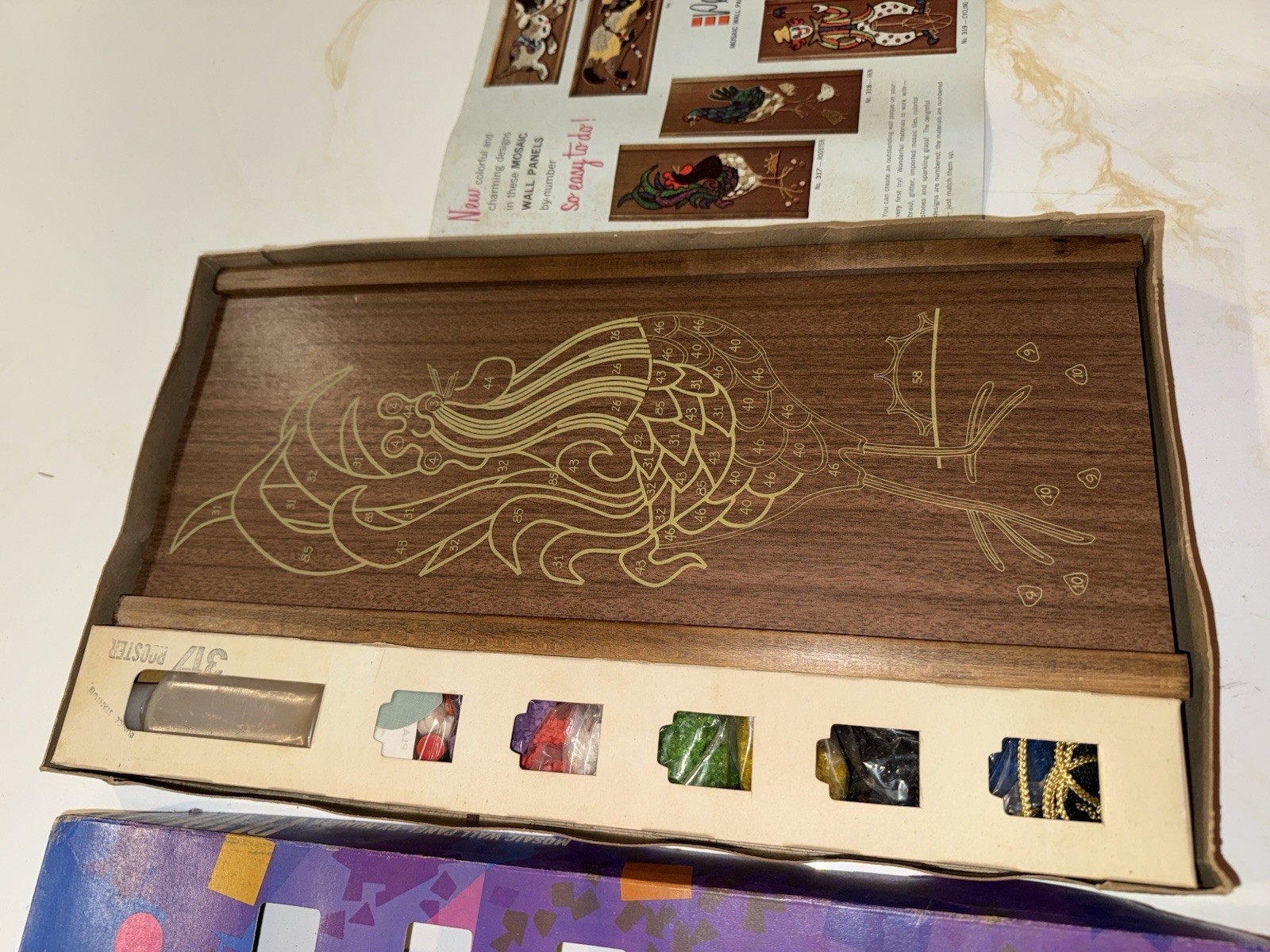Vintage 1964 Plaquette Rooster Mosaic Wall Panel by Number Kit No. 317 NIB