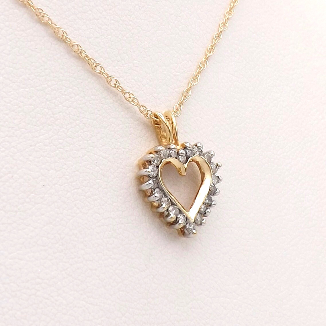 Solid 10k Gold Natural Diamond Open Heart Pendant Necklace 18in