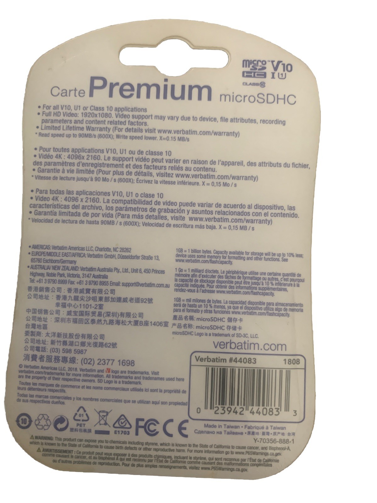 PE Verbatim Class 10 microSDHC Card with Adapter 32 GB