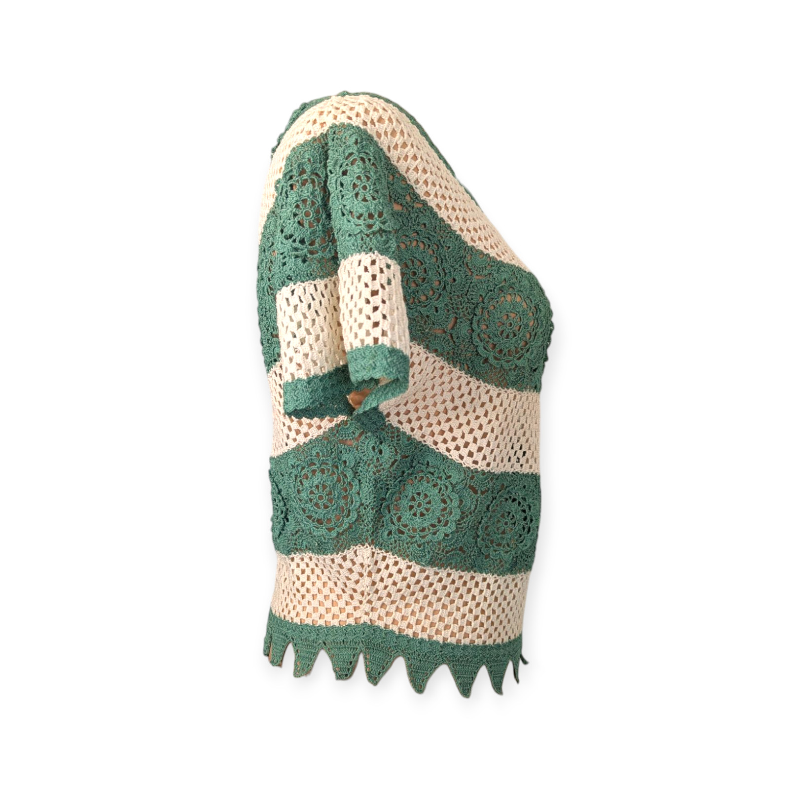 Cream Sage Vintage Cotton Crochet Top Shanghai Handmade Small