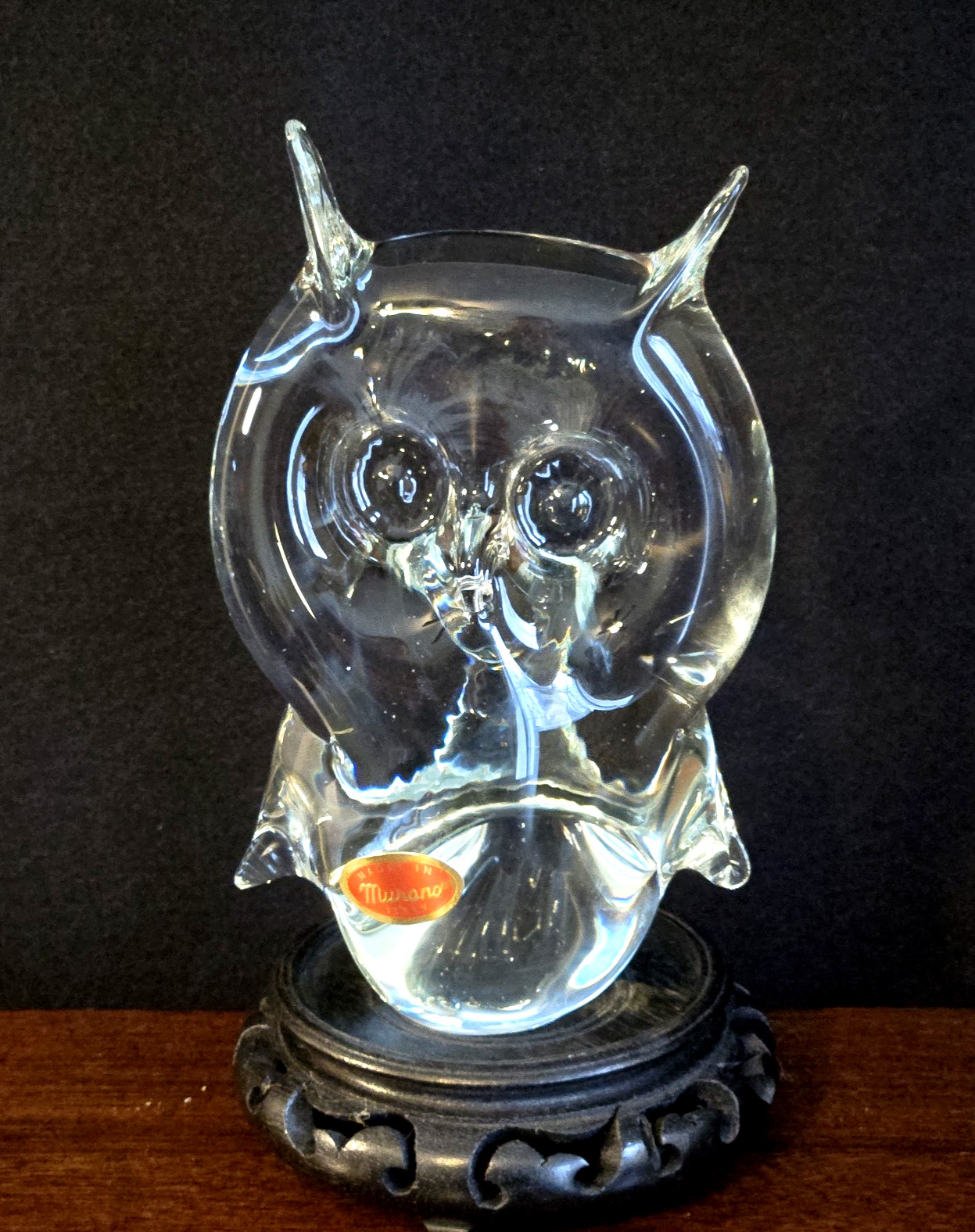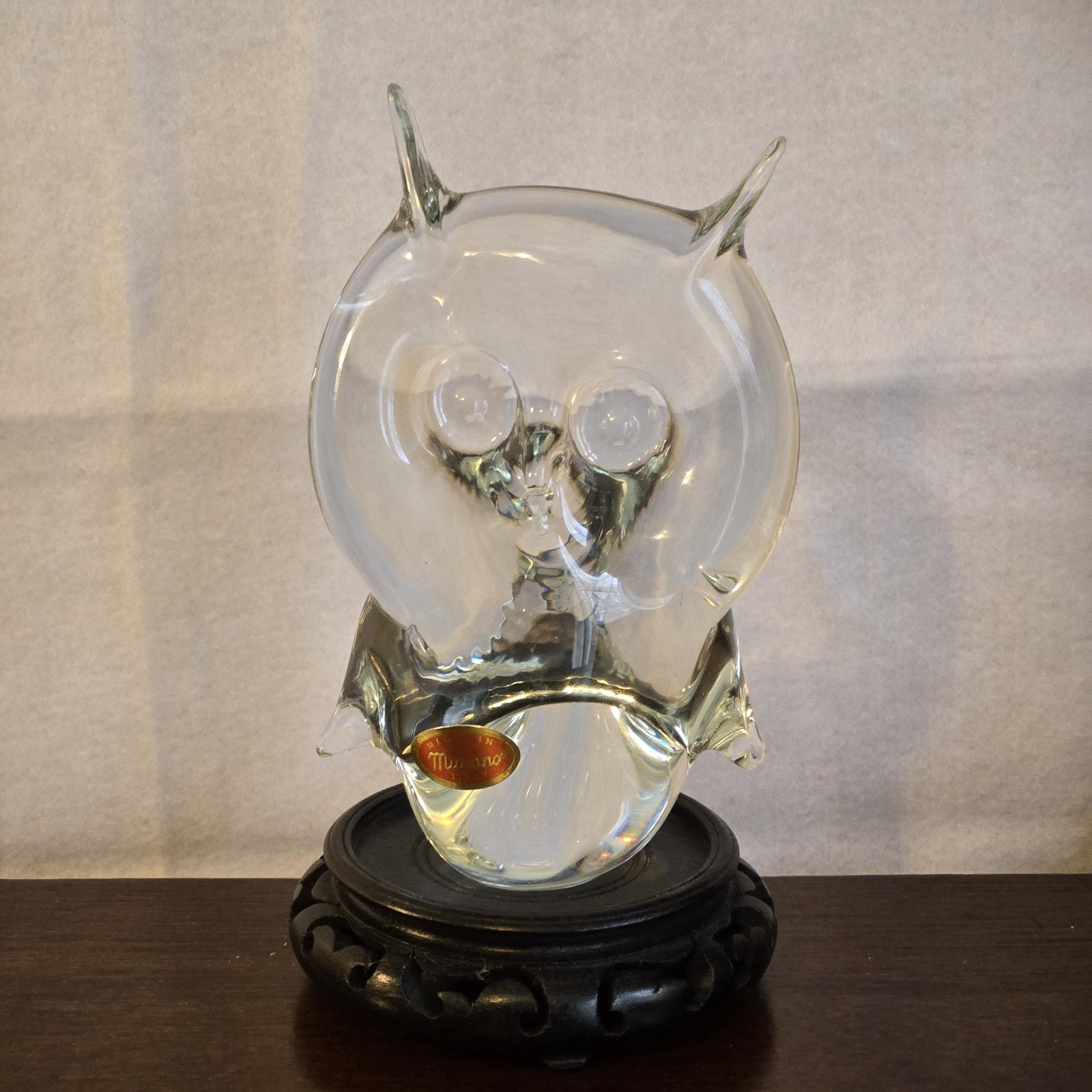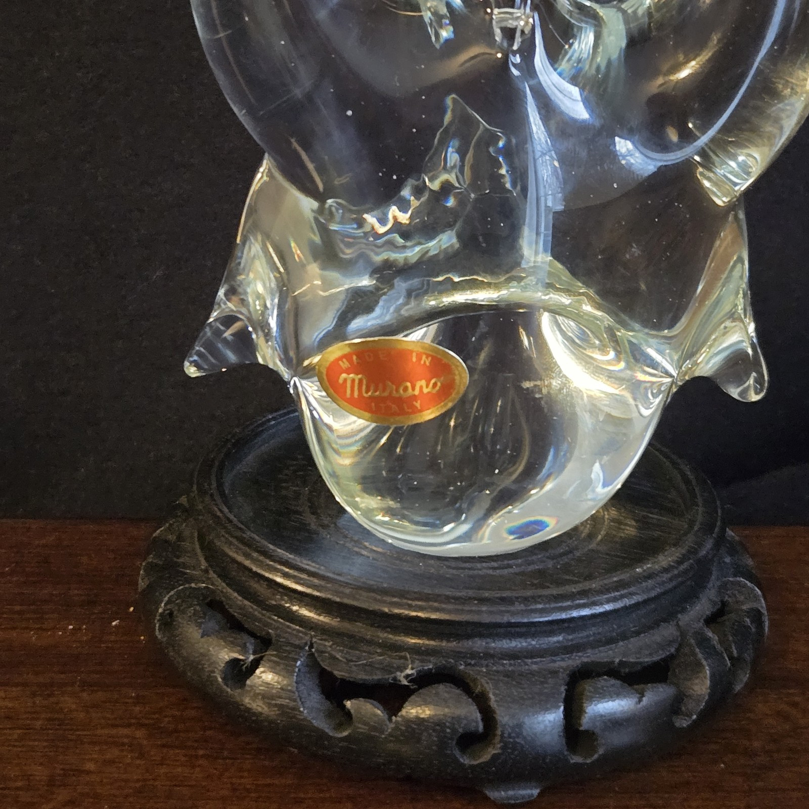 как выглядит VTG MCM Hand Blown MURANO Clear Glass Owl Figurine Paperweight w Label Italy фото