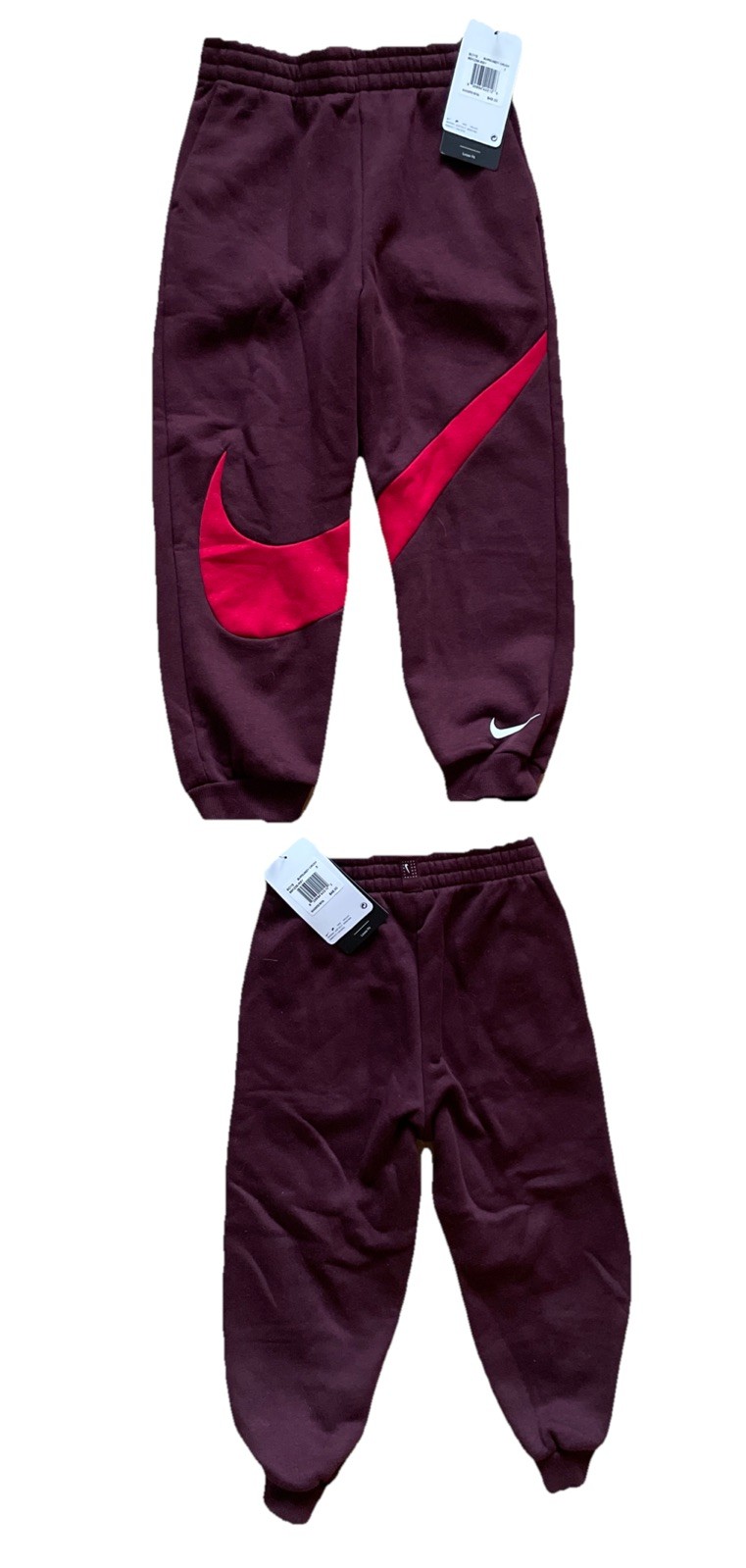 Nike Boys Sweatsuit Oversized Fit Burgundy w/Big Red Swoosh Hoodie Joggers 5-7