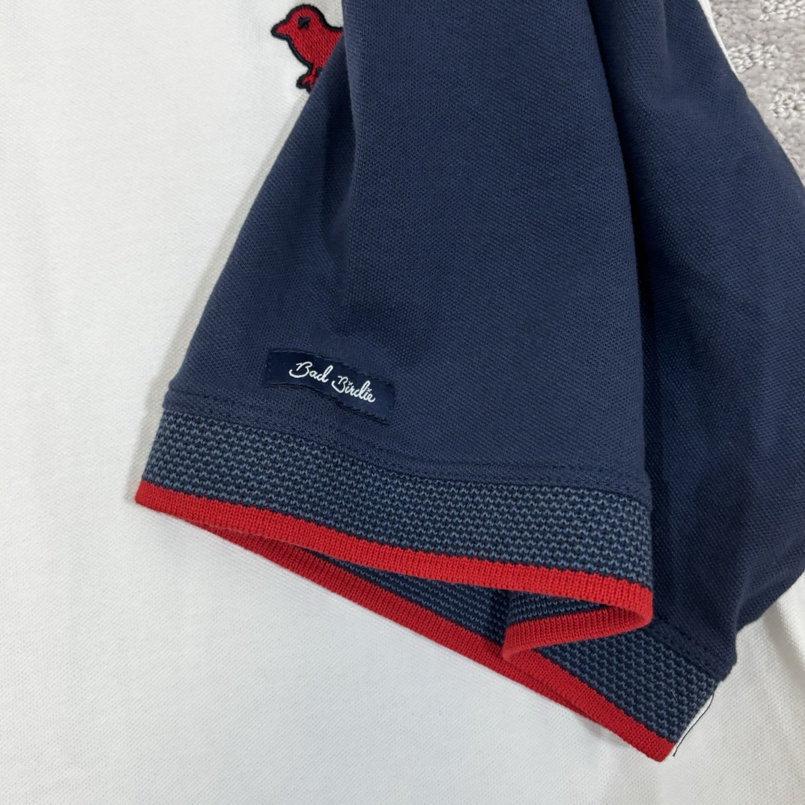 Bad Birdie Pique Golf Polo White Dark Navy Red Shirt Short Sleeve Mens XL