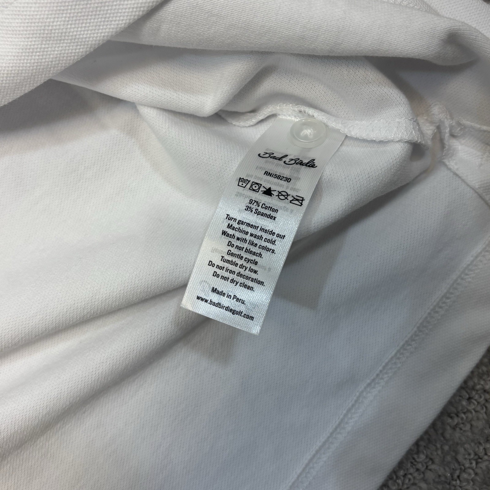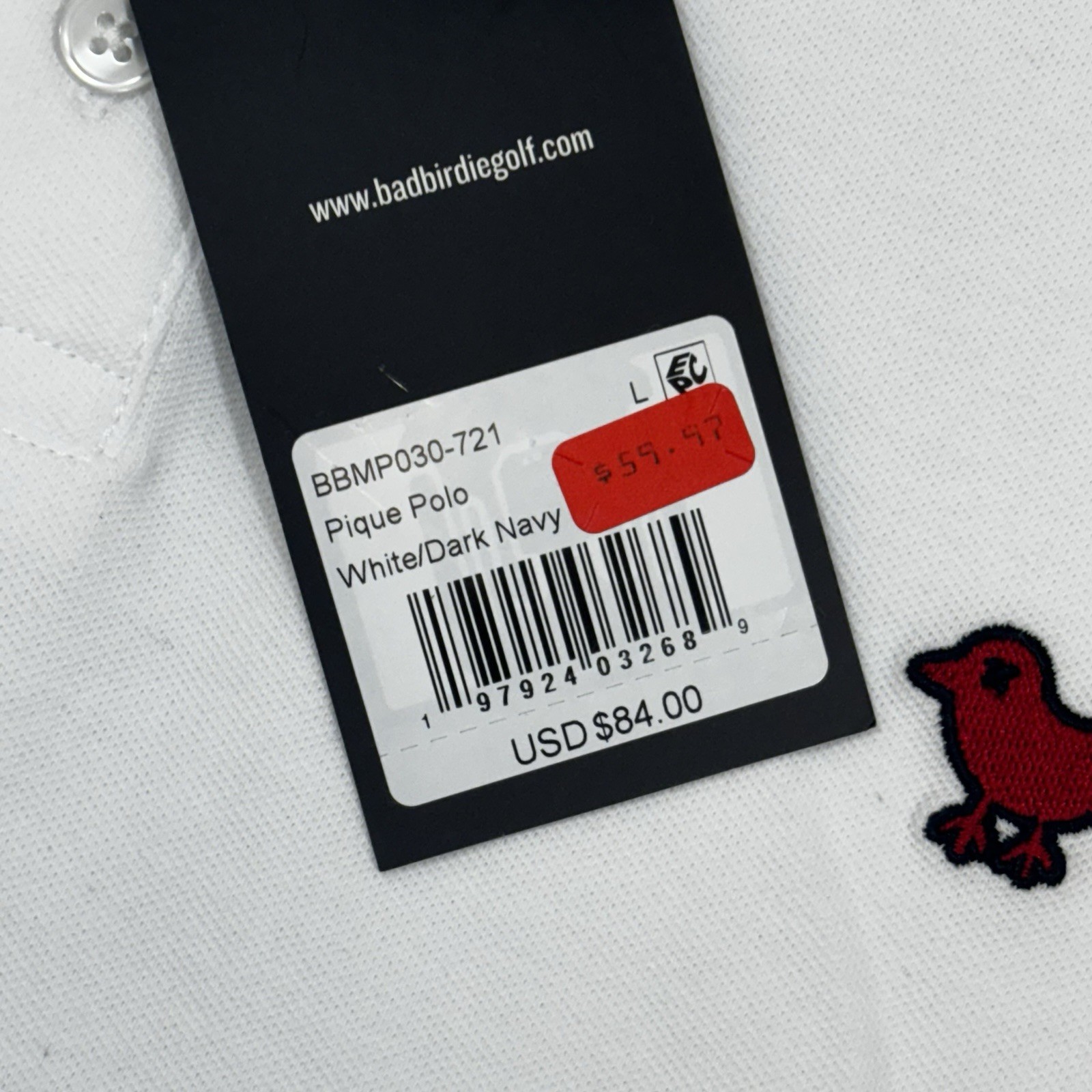 как выглядит Bad Birdie Pique Golf Polo White Dark Navy Red Shirt Short Sleeve Mens Sz L фото