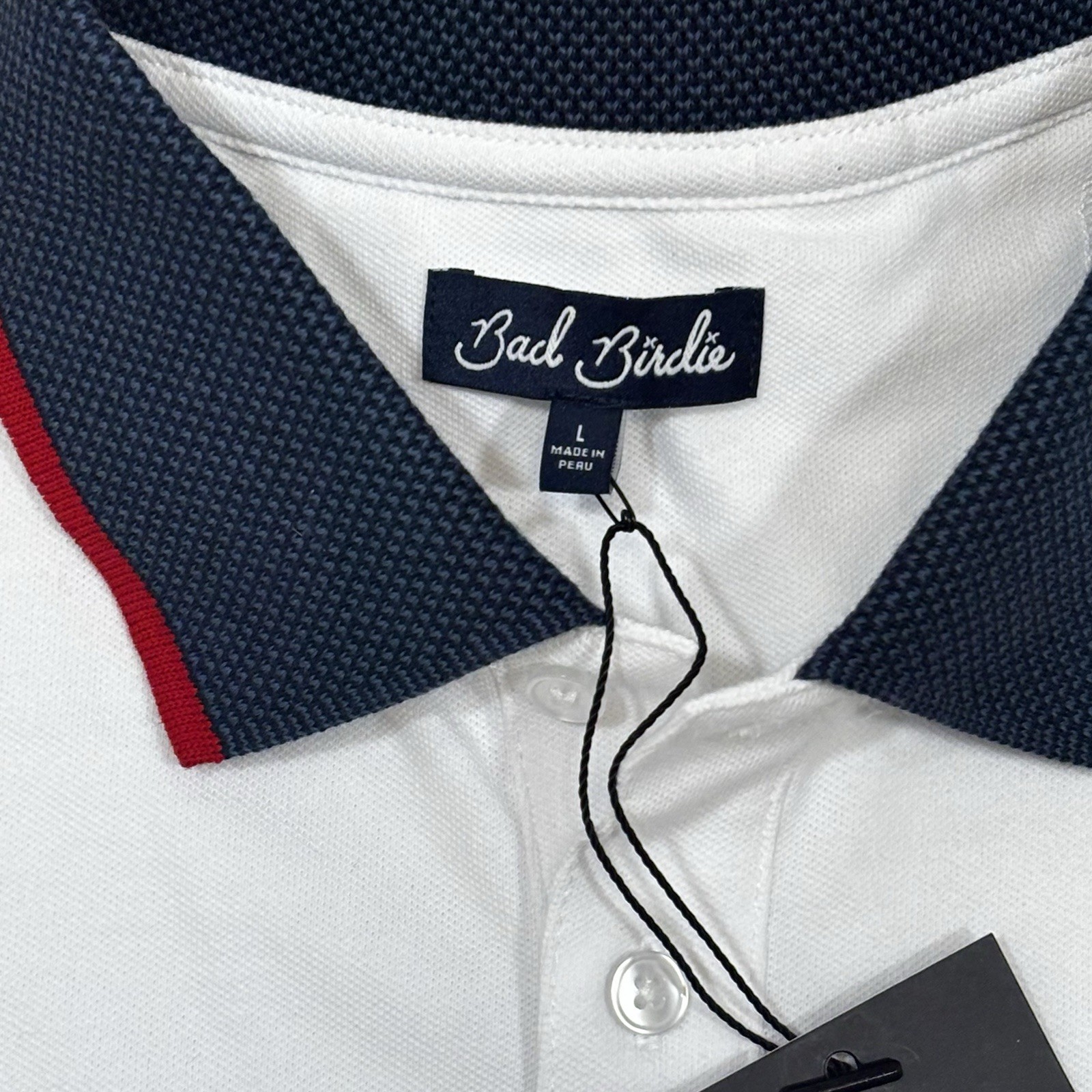 Bad Birdie Pique Golf Polo White Dark Navy Red Shirt Short Sleeve Mens Sz L