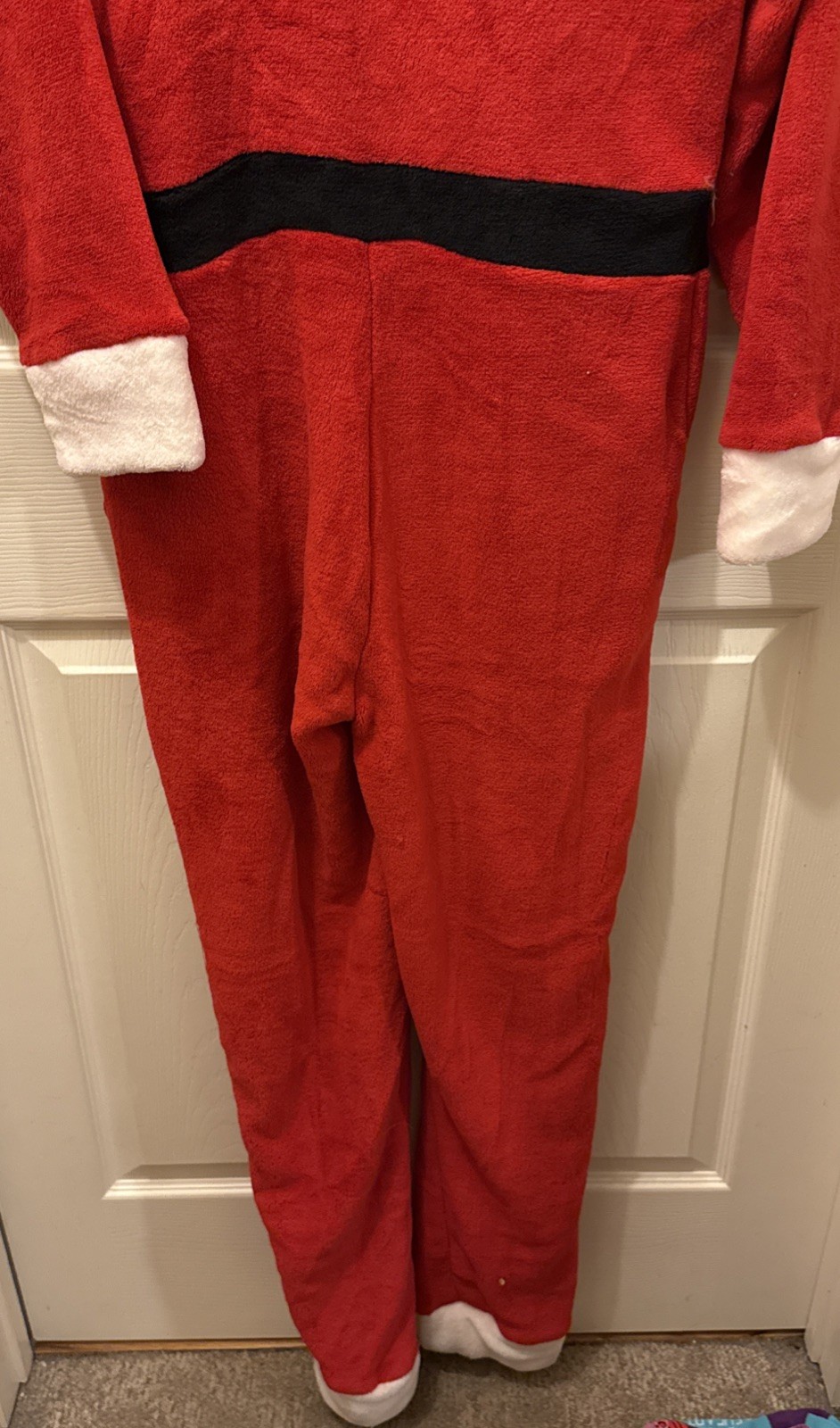 Santa Claus Unisex Size Large PJs One Piece Christmas Hooded Footless Costume