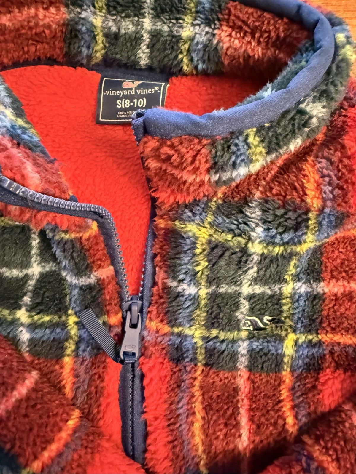 Vineyard Vines RED Plaid Fleece 1/4 Zip Kids Small 8-10 Holiday EXCELLENT