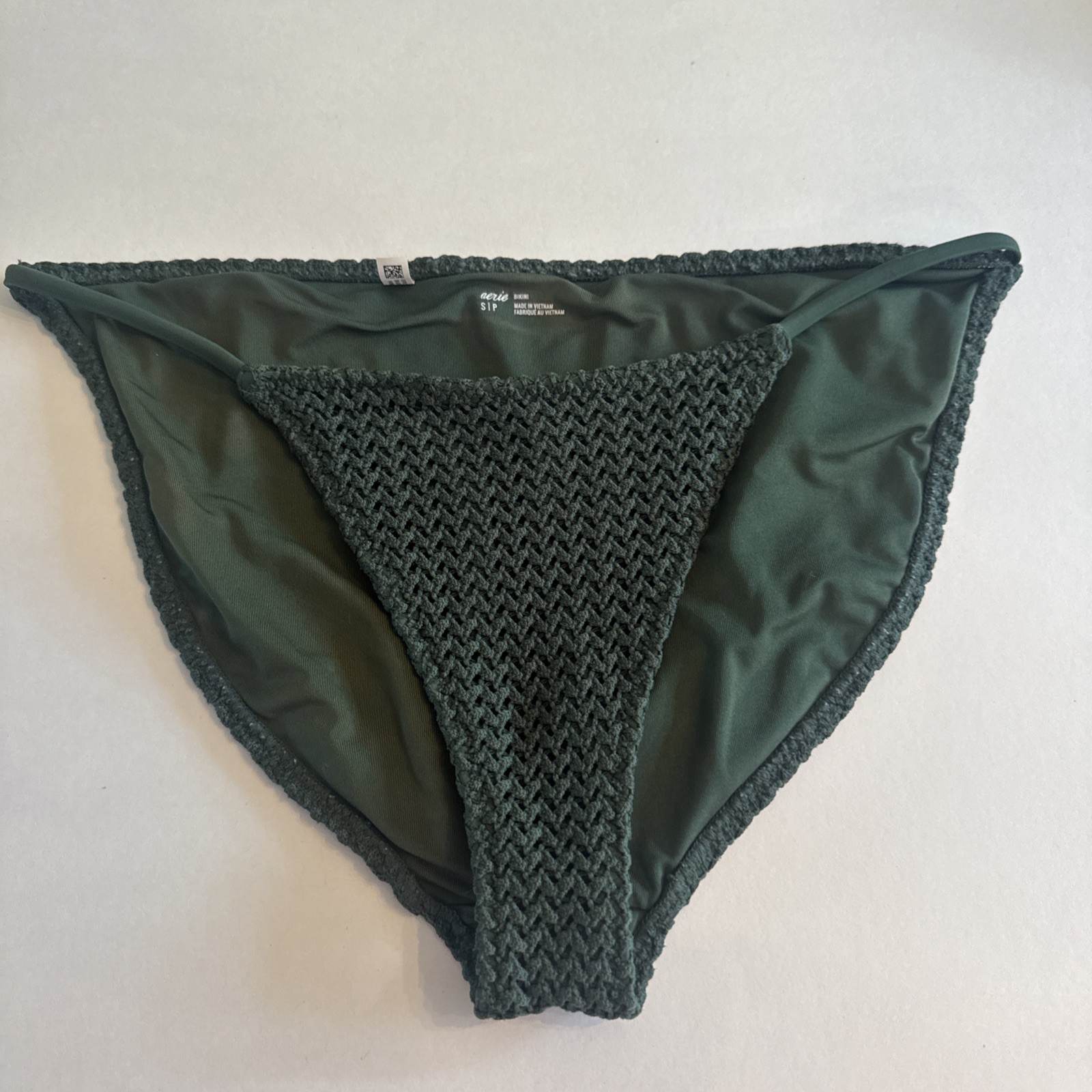 Aerie Bikini Bottom String Women's Small Green Crochet Swim Lined Textured